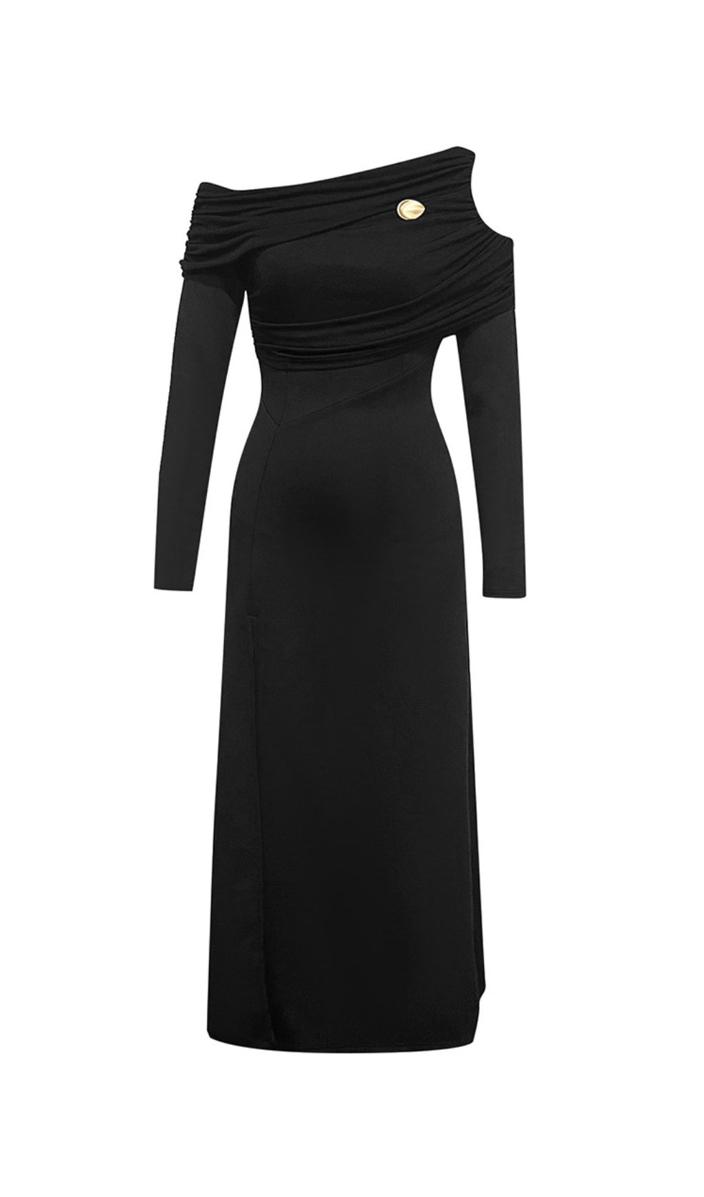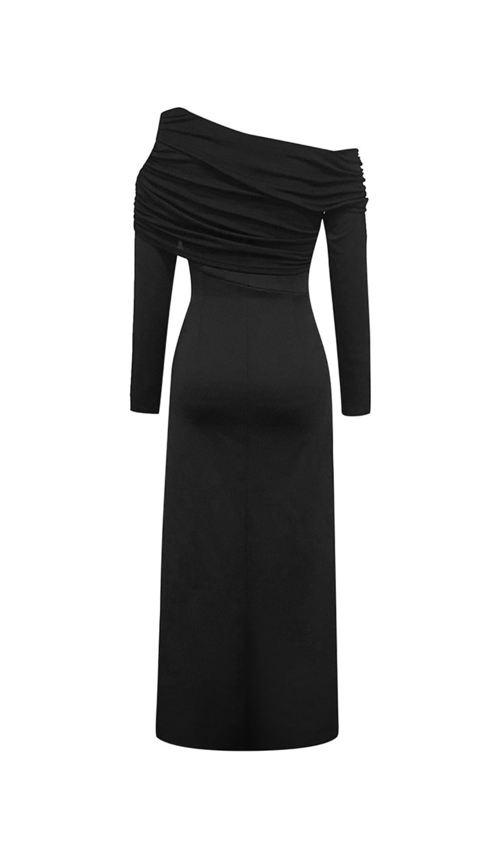 ANNORA HIGH SPLIT VELVET MIDI DRESS