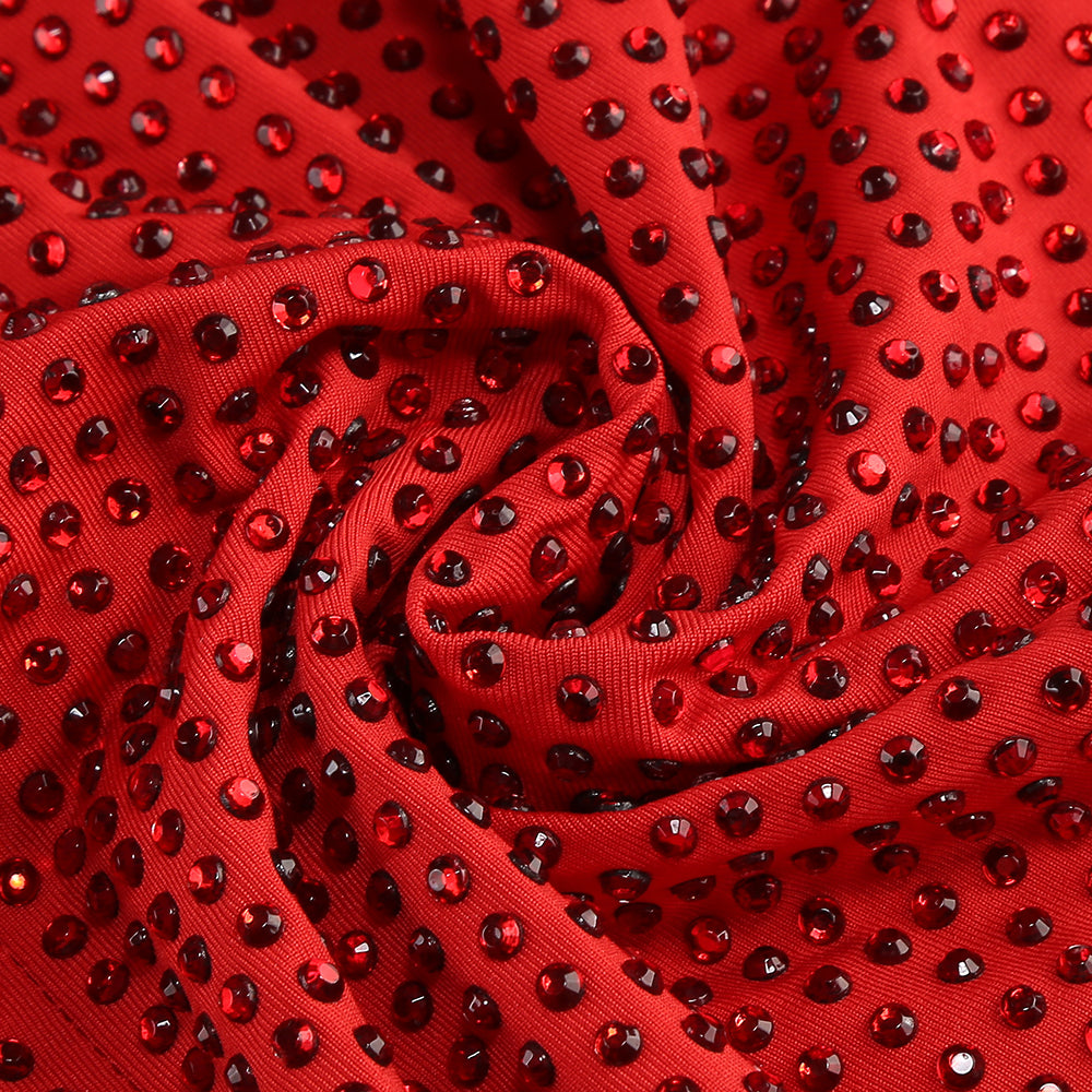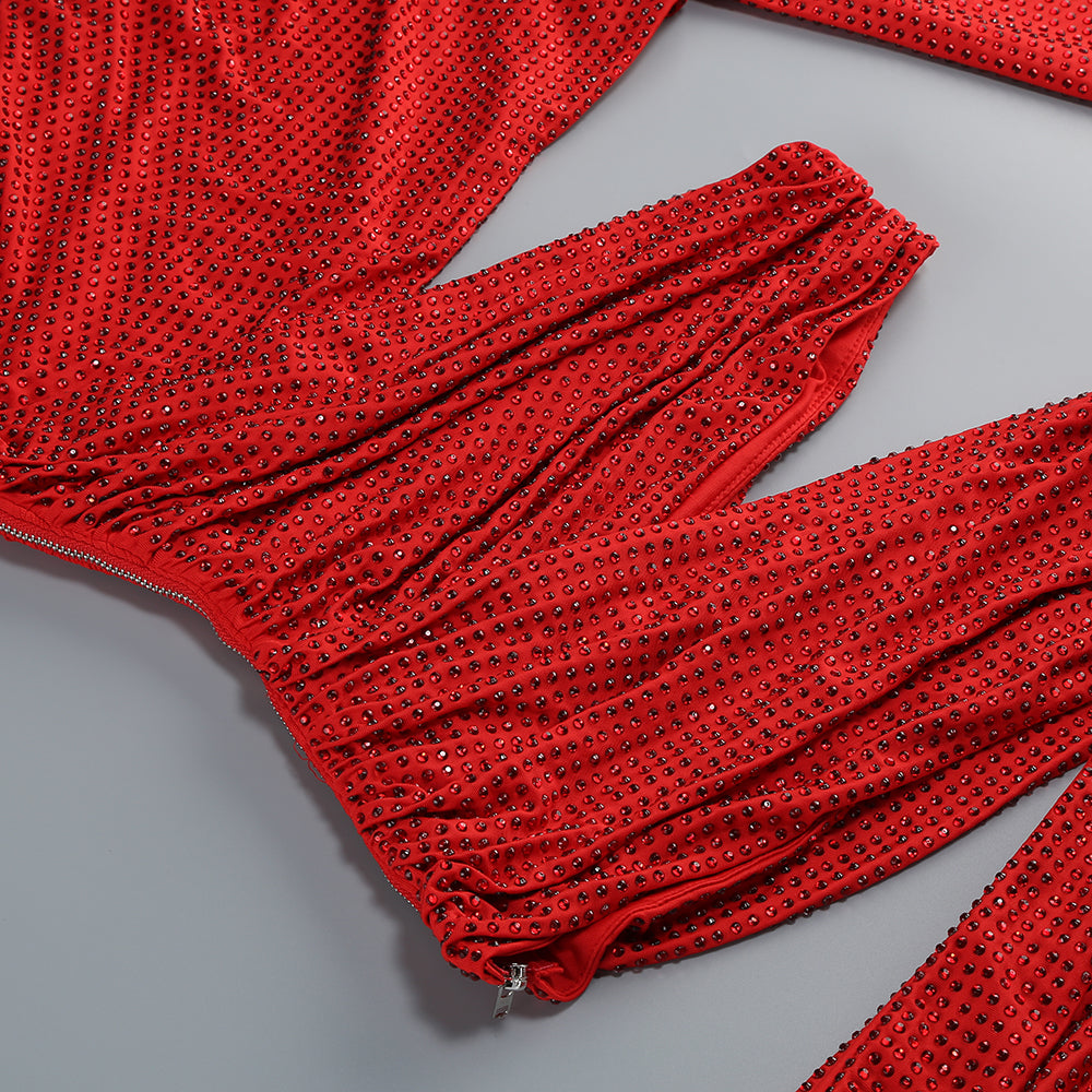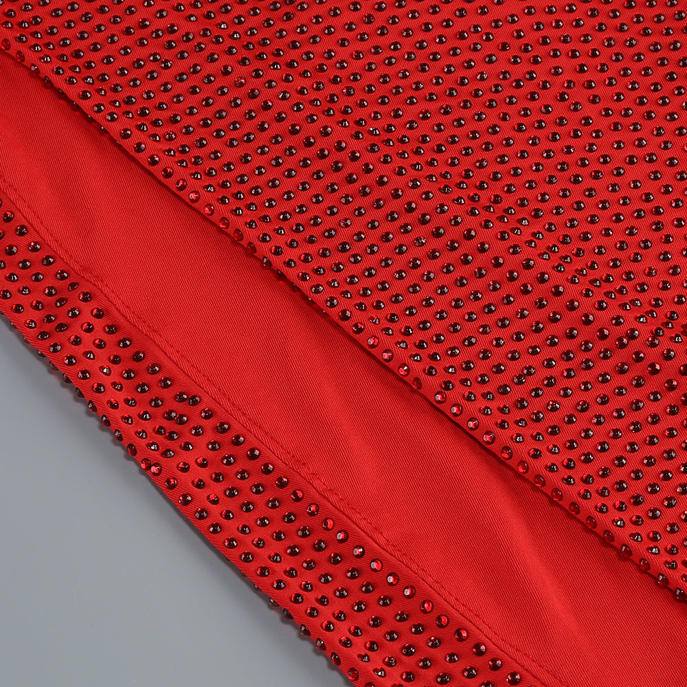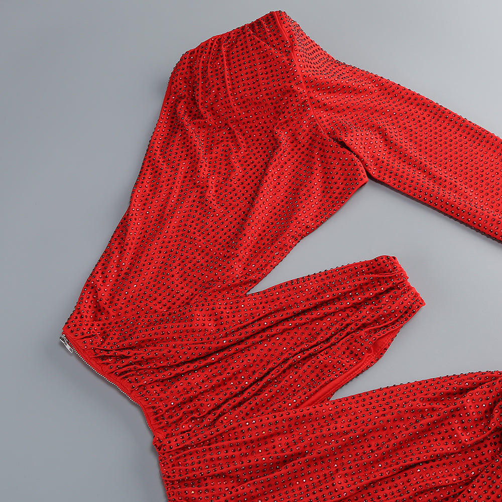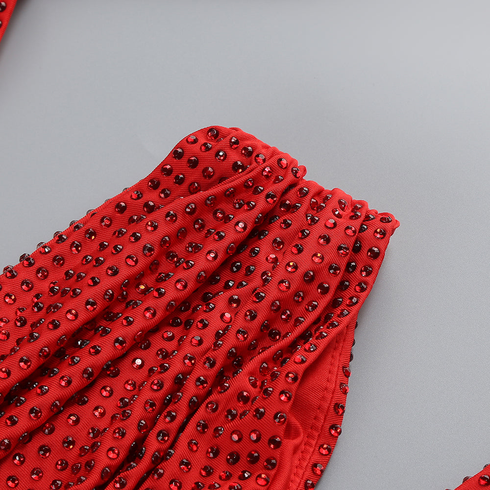One-shoulder hot diamond hollow irregular slit red maxi dress