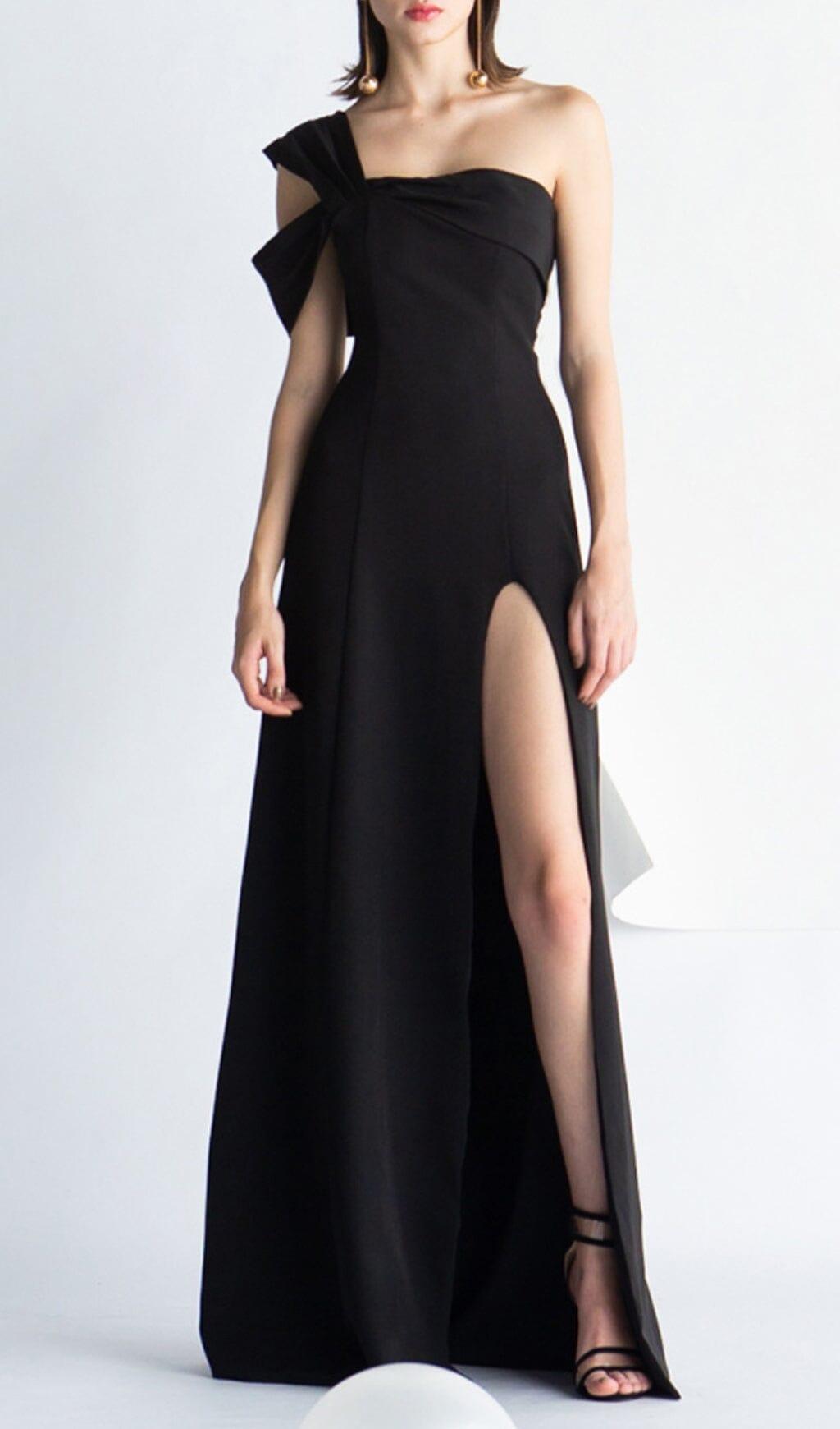 ONE-SHOULDER MOP DRESS IN BLACK
