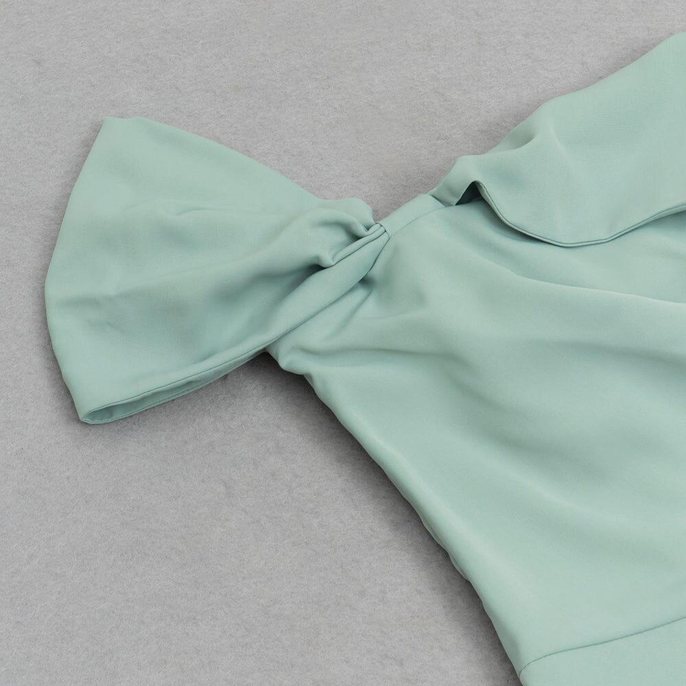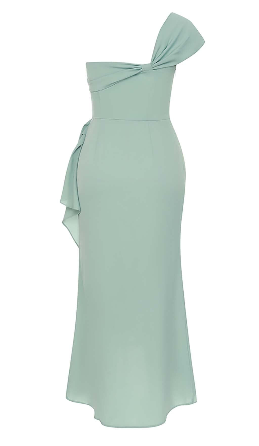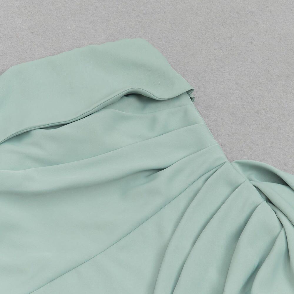 • Ethereal elegance: This dress epitomizes ethereal elegance with its minty green color and delicate one-shoulder ruching.