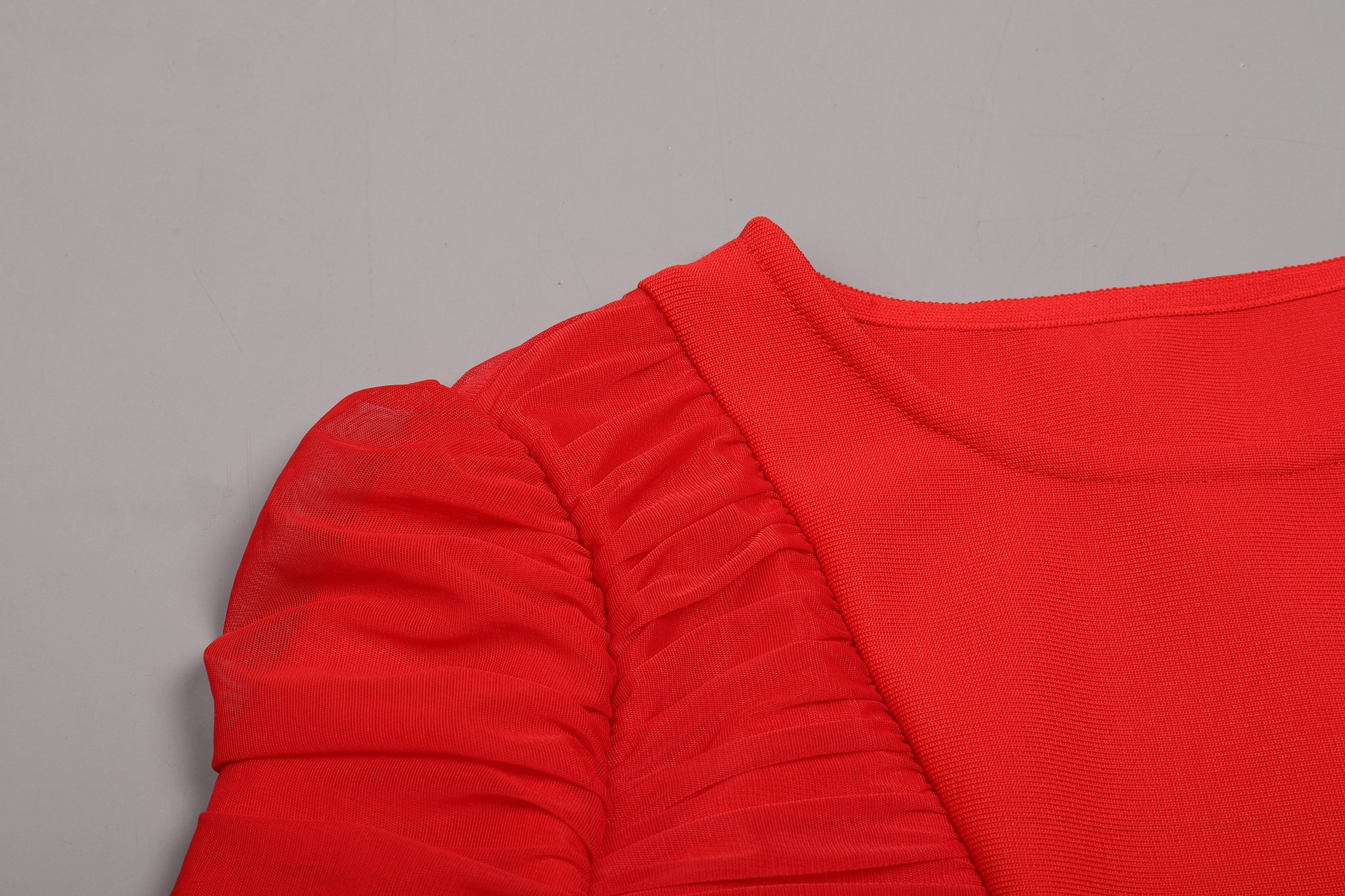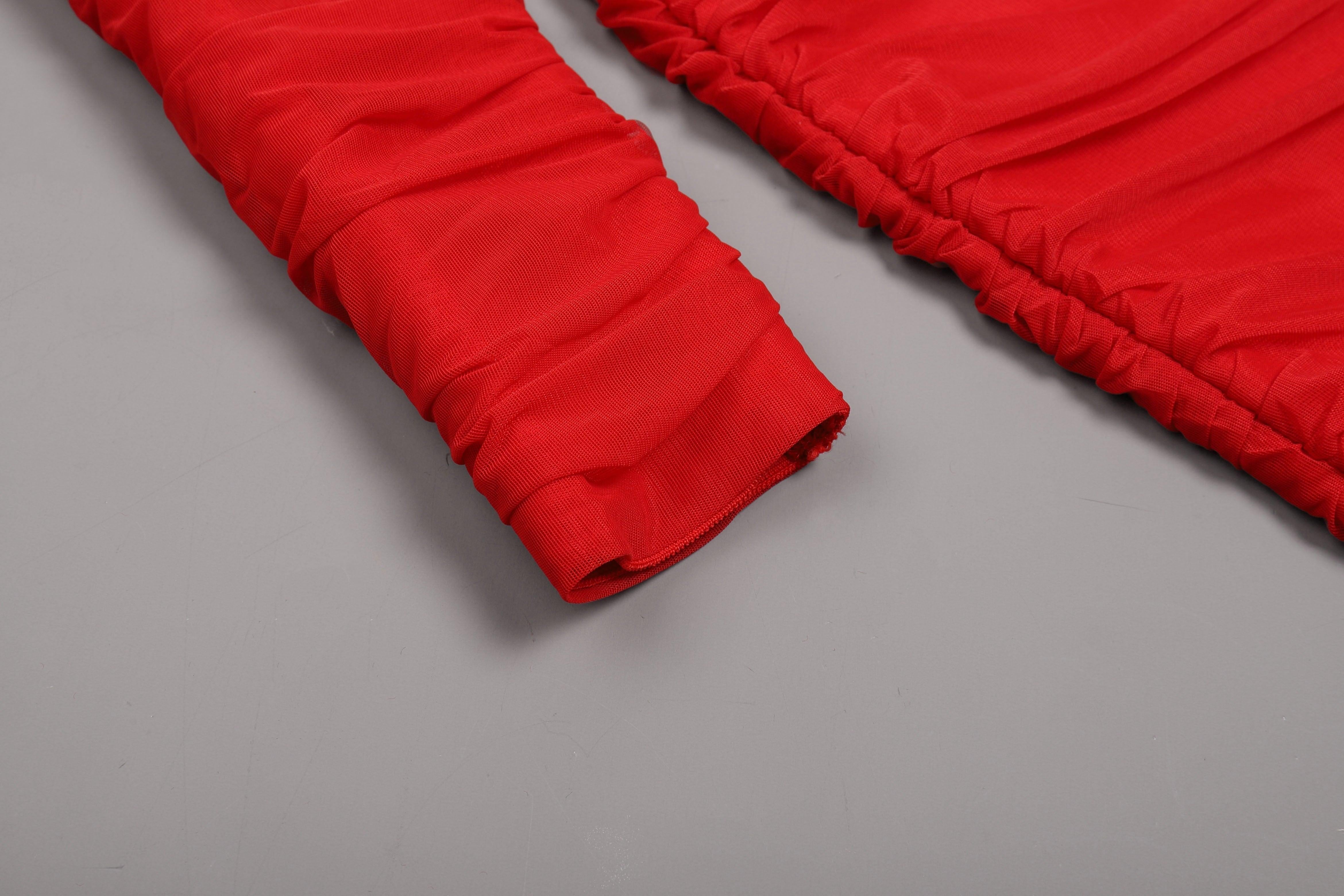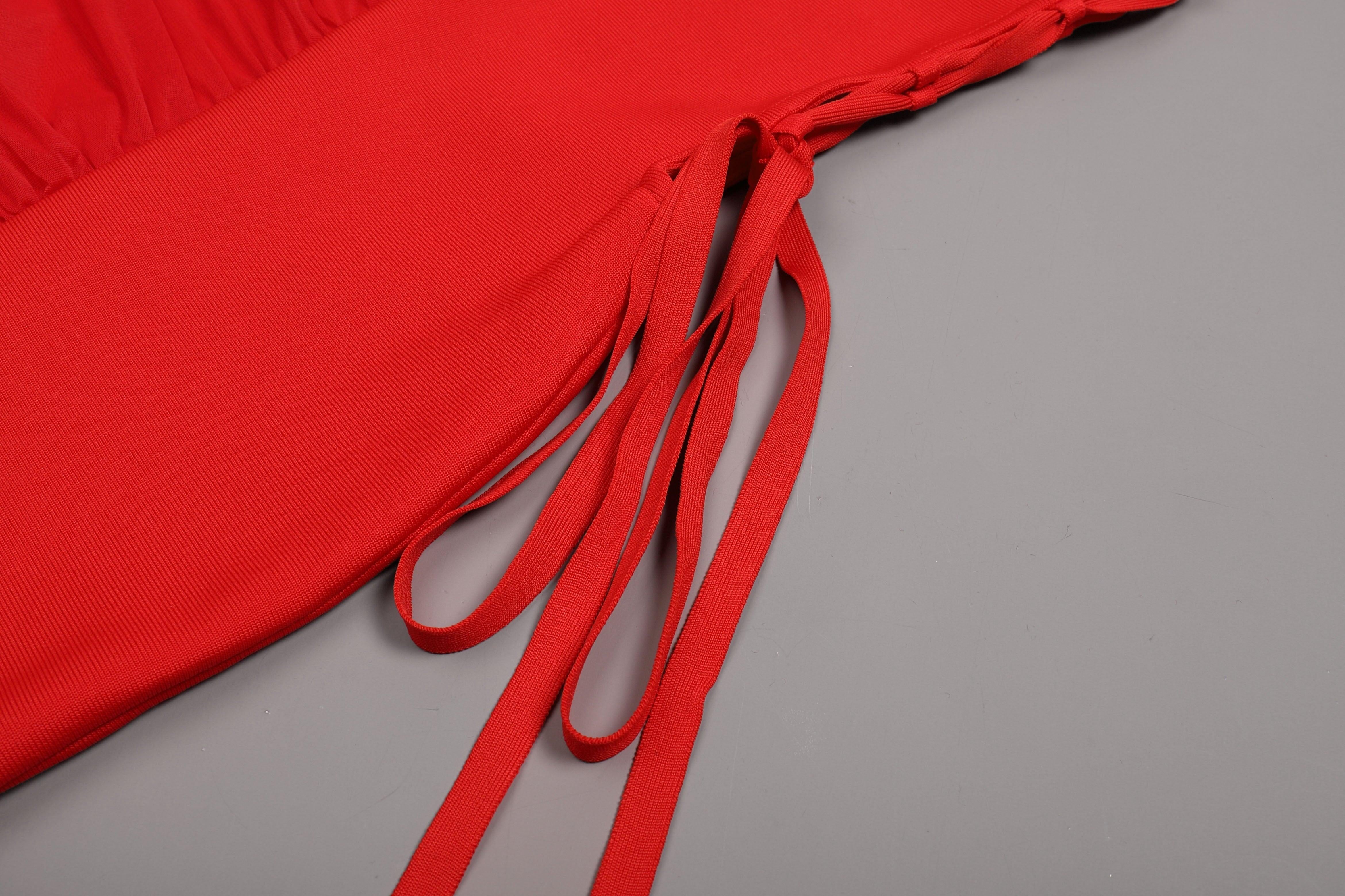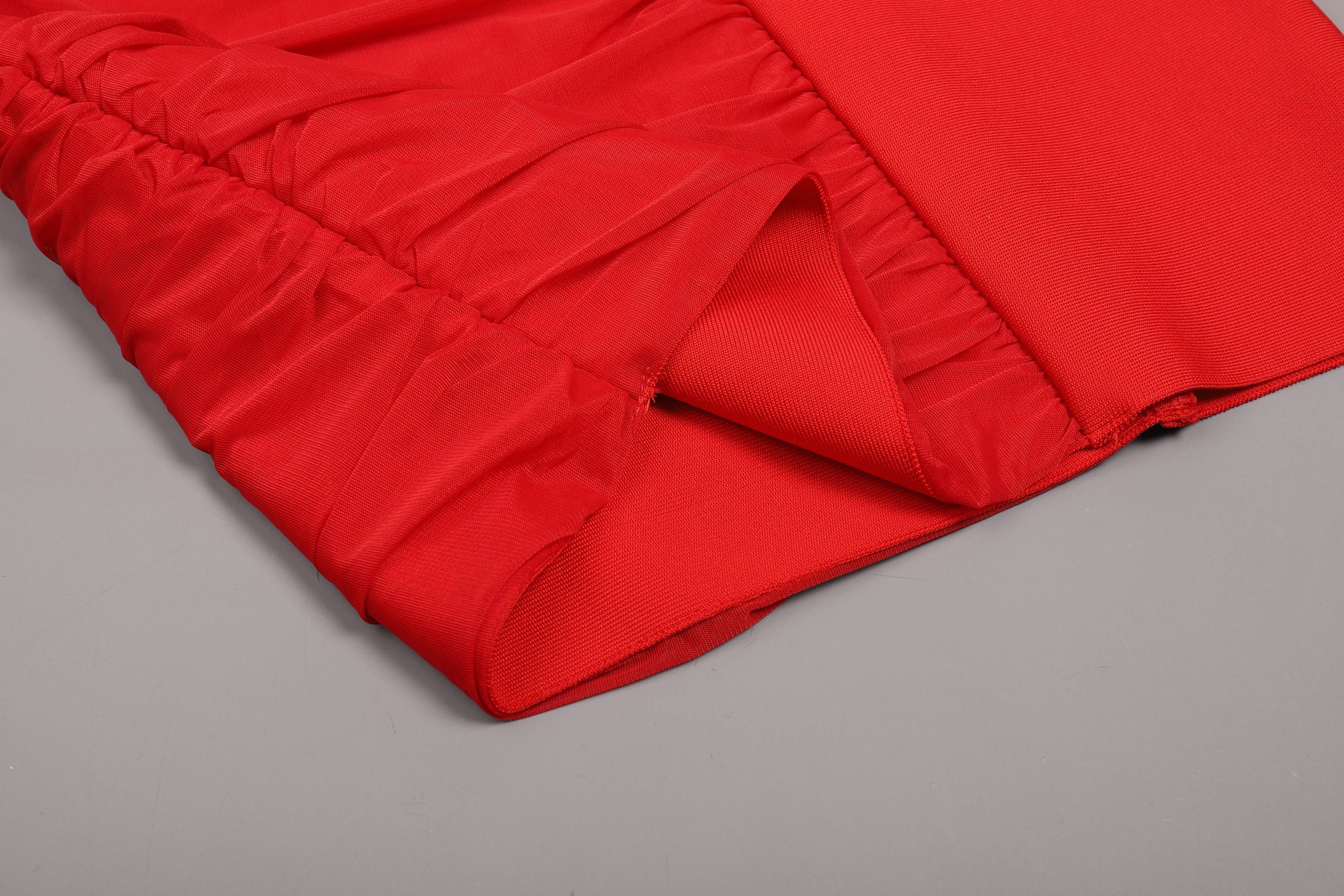 The ONE SHOULDER RUCHED MINI DRESS IN RED is the perfect combination of fun and femininity. With its unique one-shoulder design and eye-catching pleating effect, this dress is sure to make a statement. The bandage design on the other side adds an extra touch of boldness, making this dress a standout piece in any wardrobe.