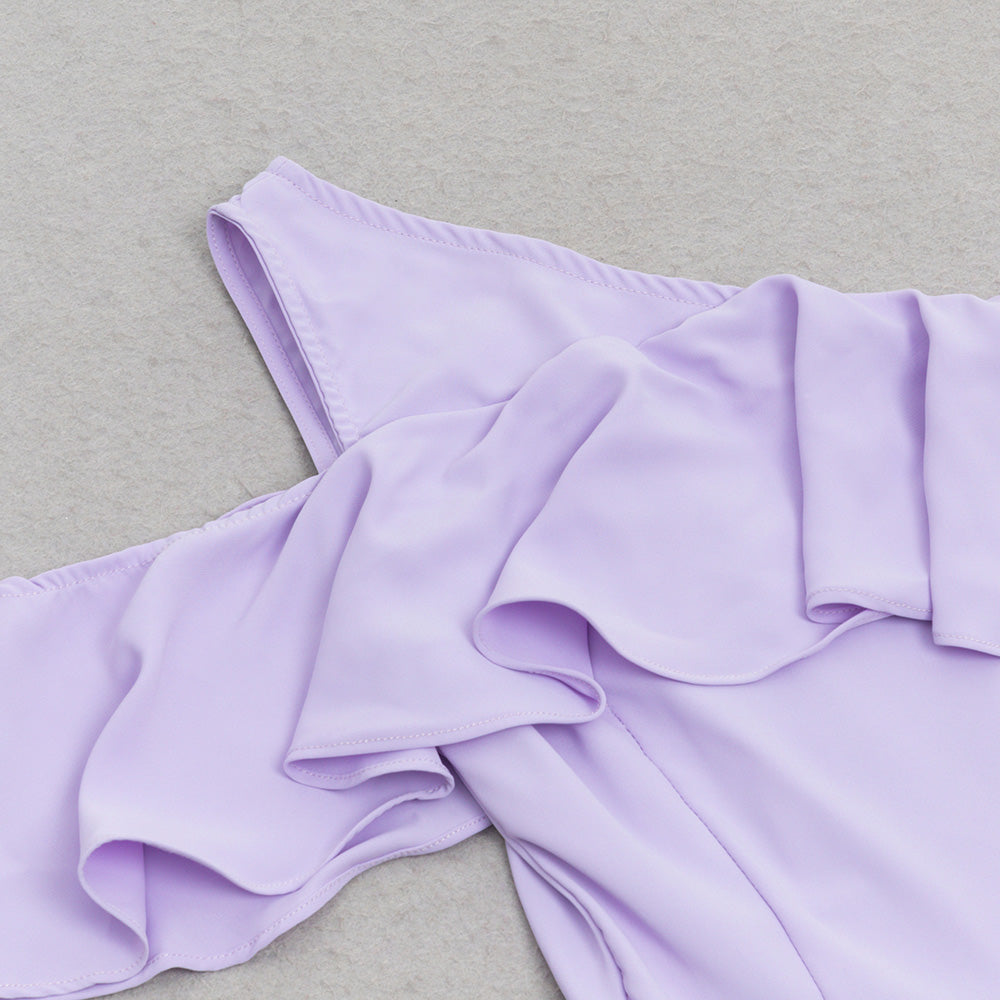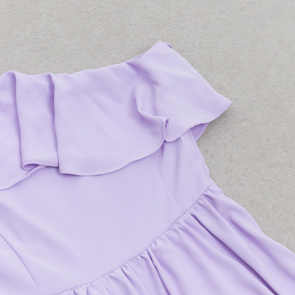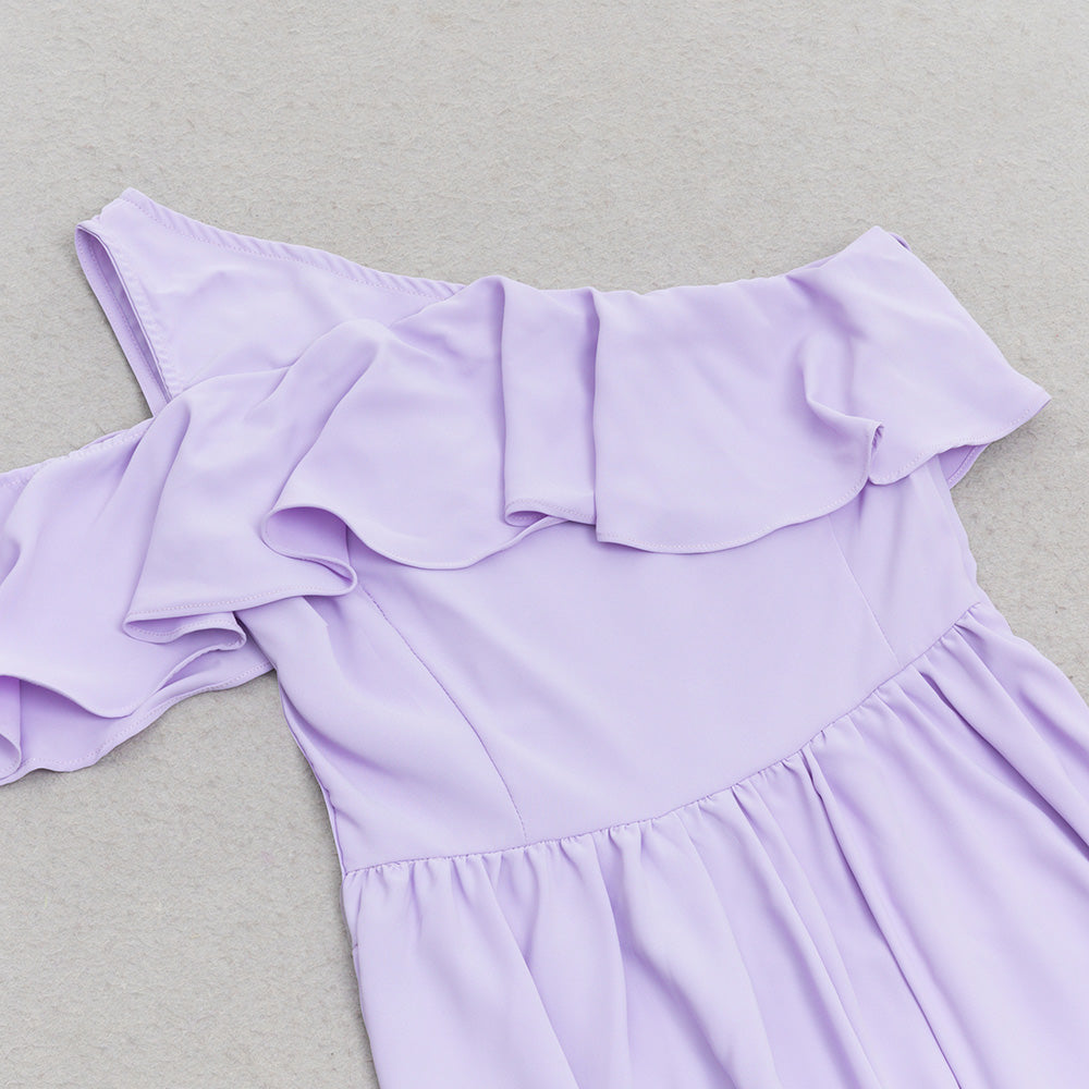 ONE SHOULDER RUFFLE TRIM DRESS IN PURPLE