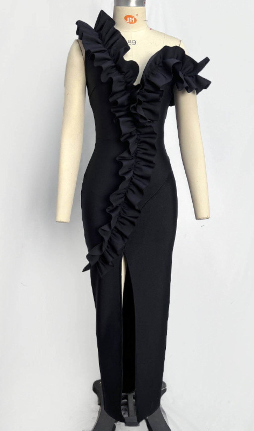 This dress has a black hue, one - shoulder neckline, ruffle trims, and a side slit. The bold, feminine design is eye - catching. Ideal for ��holiday break dress to impress�� gatherings, as ��hoco dress inspo�� for homecoming, or a ��celebrity event dress to impress�� occasion. Its glamorous, standout style lets you ��dress to impress�� with confidence, perfect for parties, galas, or special outings to stand out.