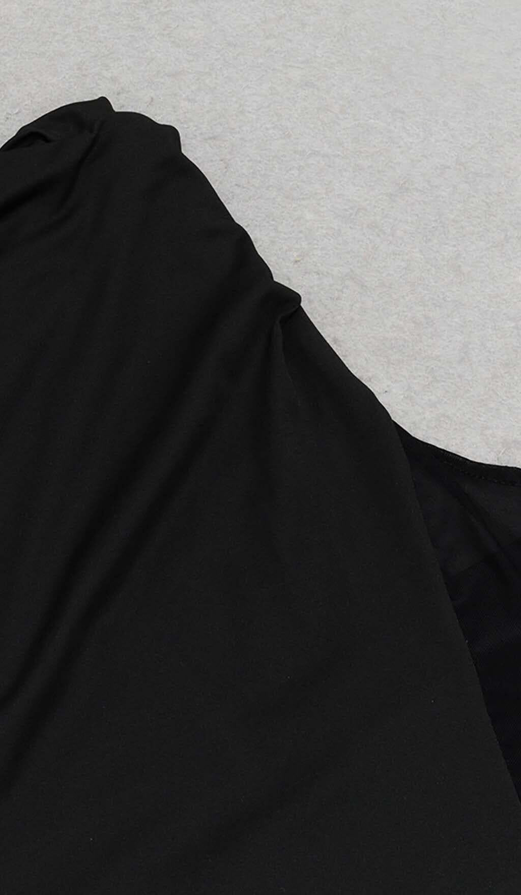 Our dress is made from high-quality black satin fabric that feels incredibly smooth and luxurious against your skin. The fabric drapes beautifully, creating an elegant and sophisticated look.
