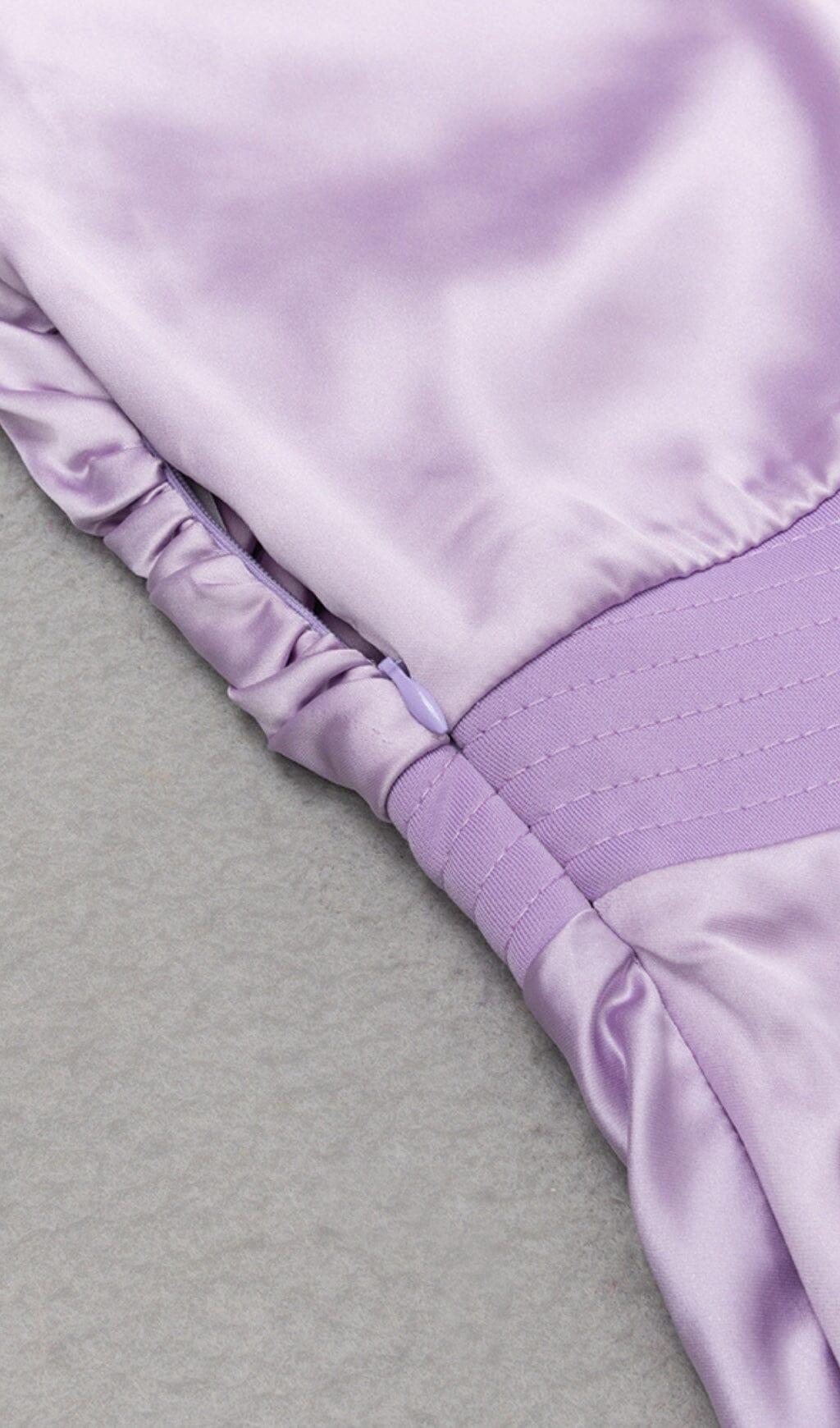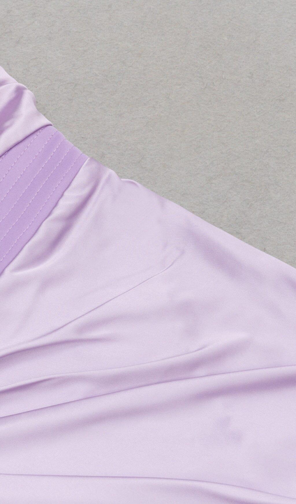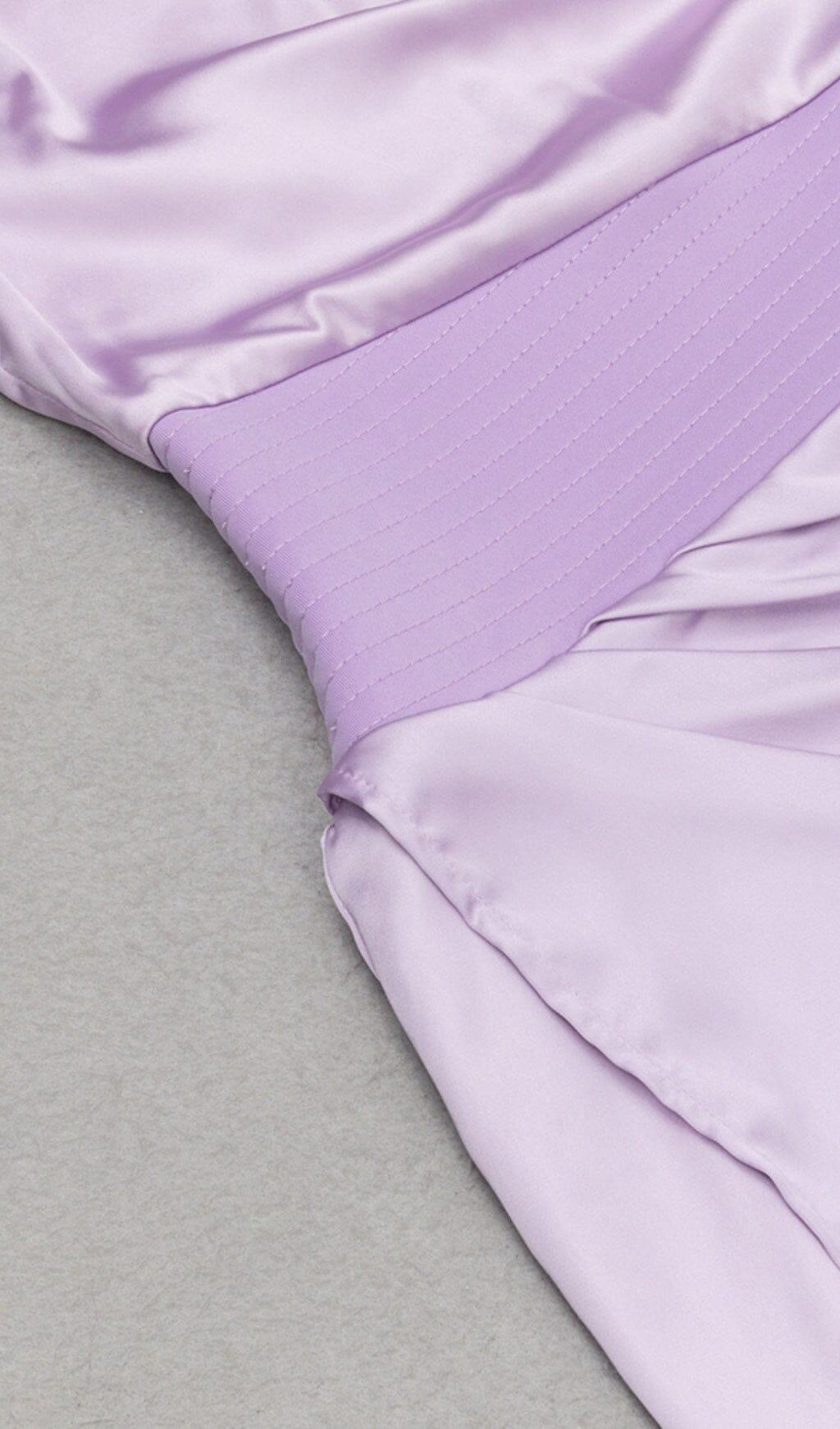 ONE SHOULDER SATIN MIDI DRESS IN LILAC