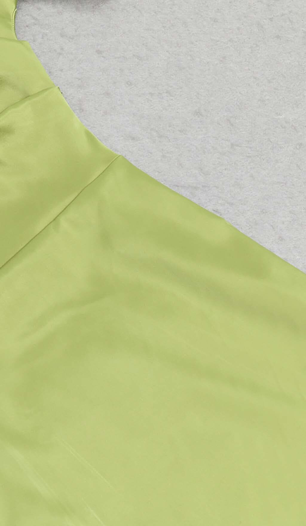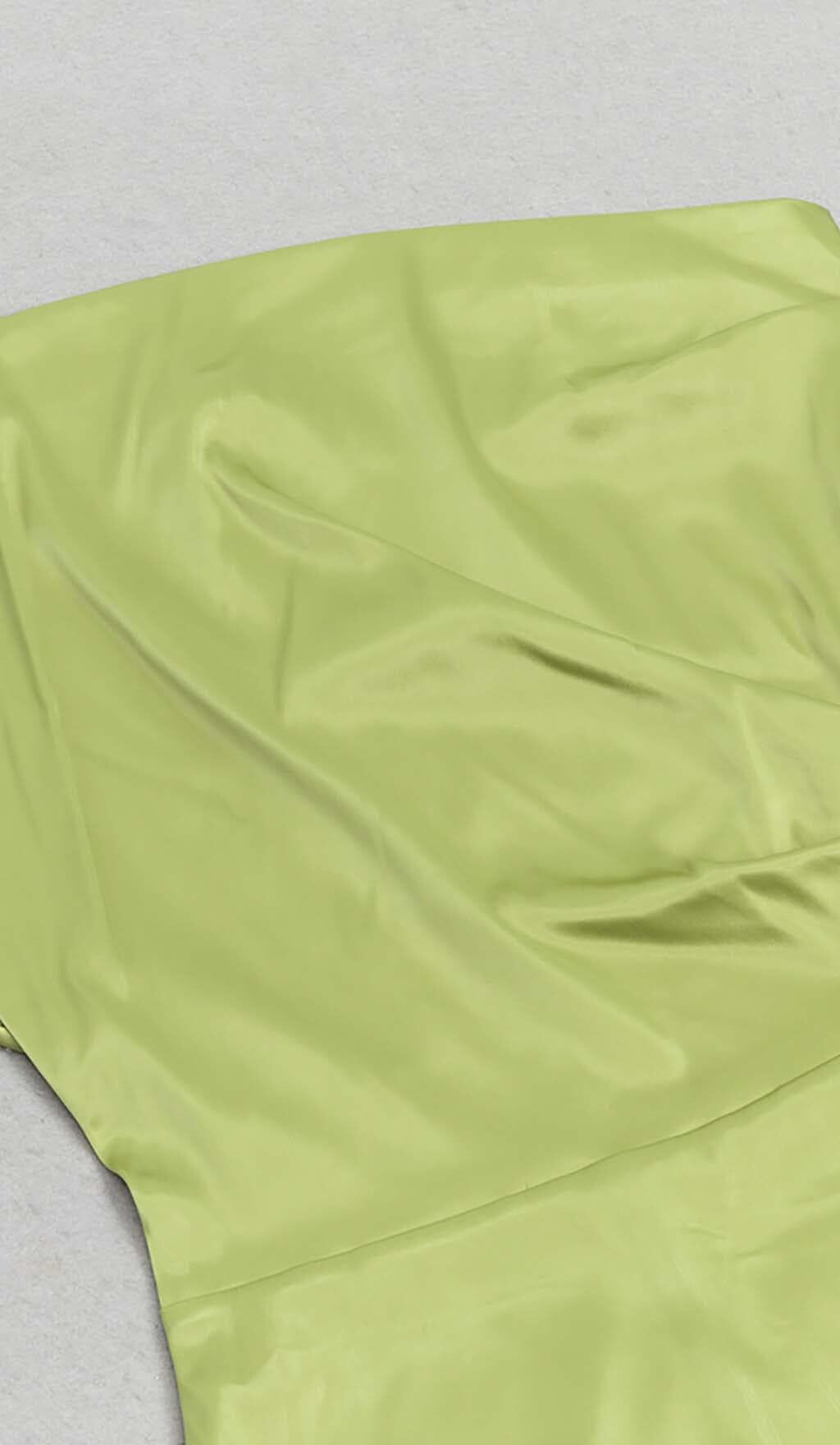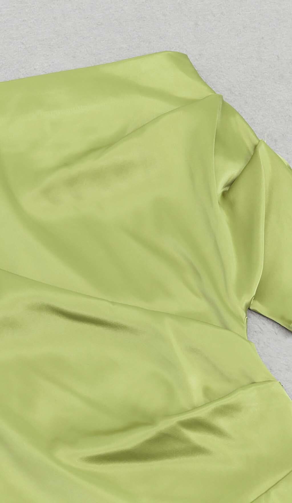 ONE SHOULDER SATIN SLIT MAXI DRESS IN GREEN