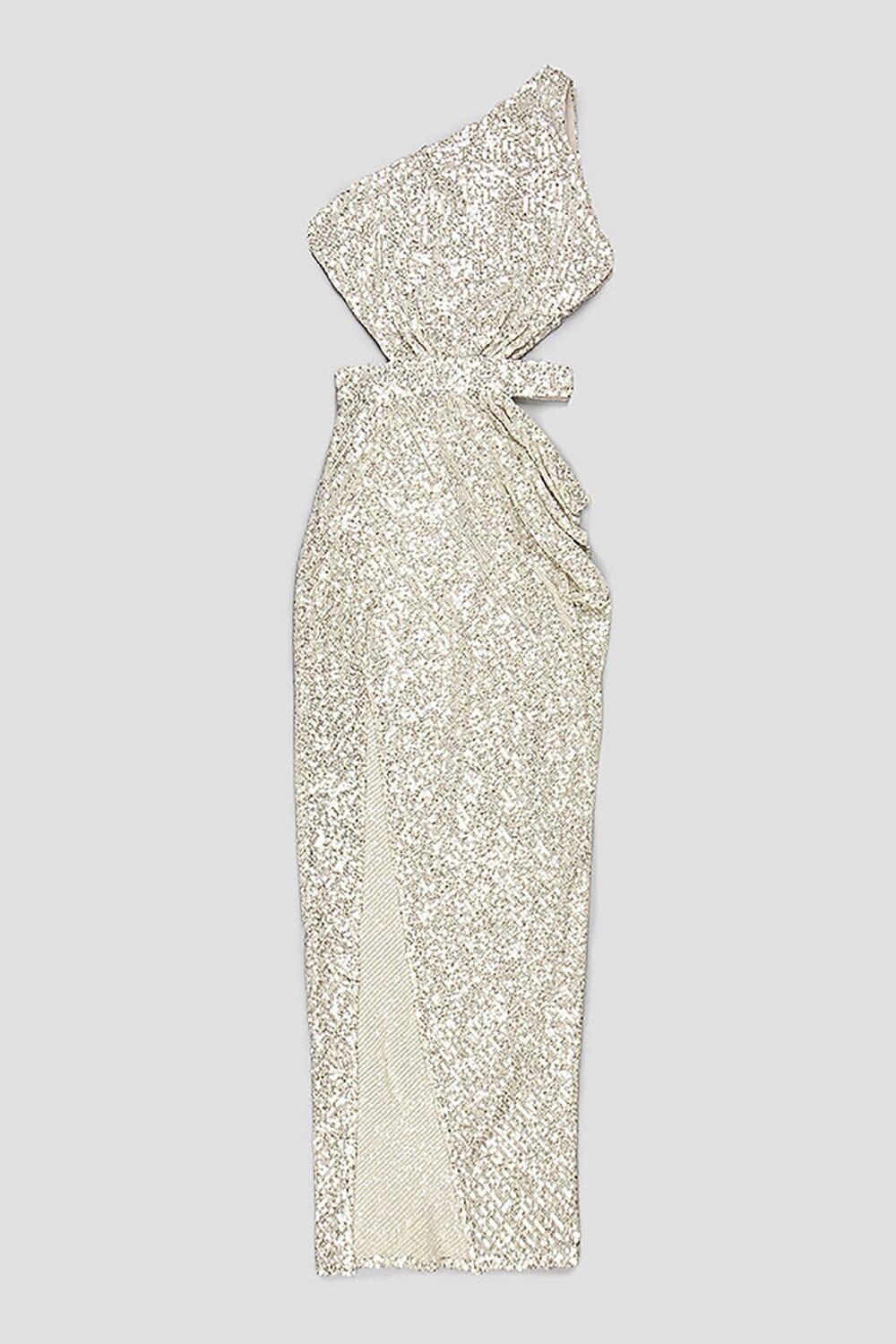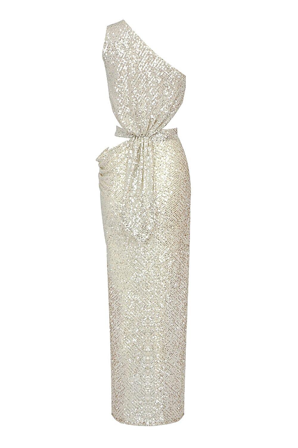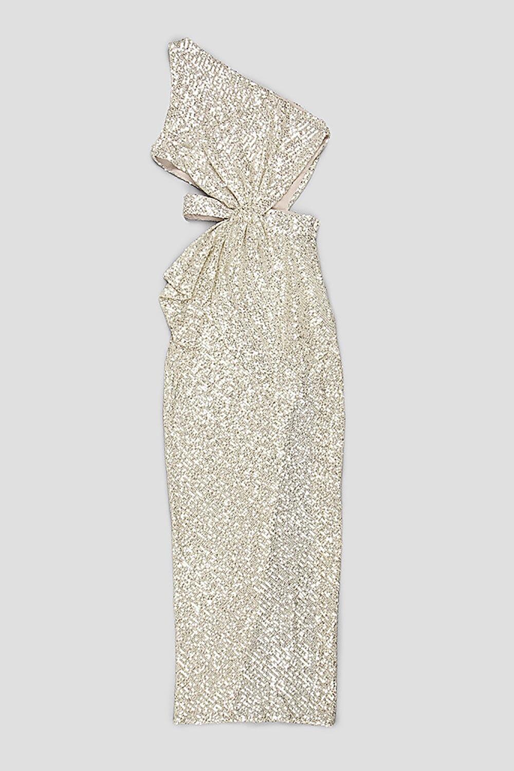 ONE-SHOULDER SEQUINS CUT OUT SPLIT MAXI DRESS