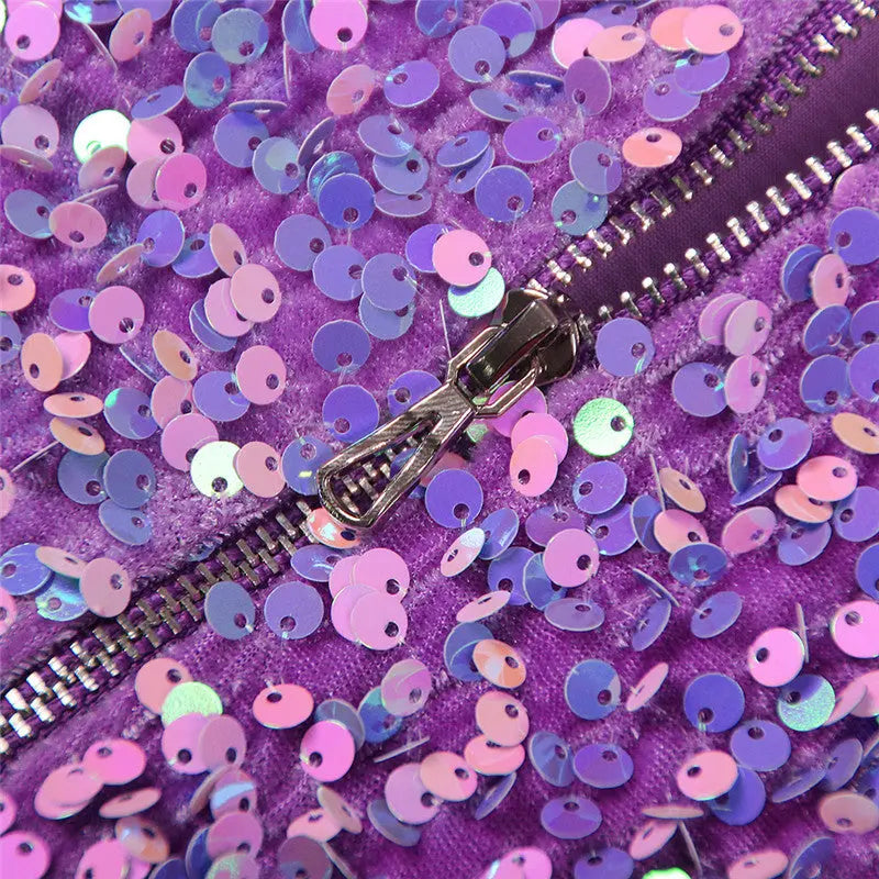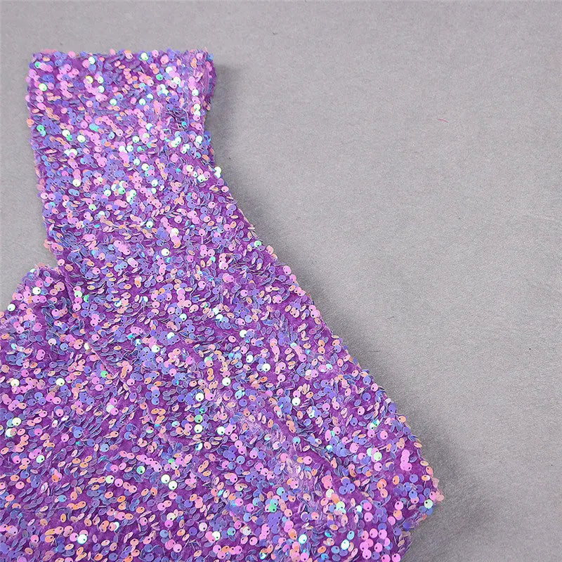 PURPLE ONE SHOULDER BACKLESS SEQUIN MIDI DRESS