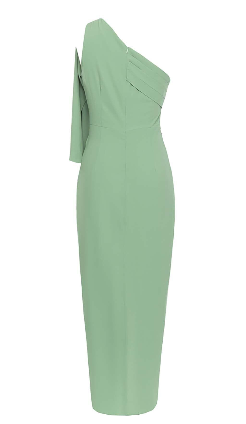 ONE SHOULDER SLIT MAXI DRESS IN PALE GREEN