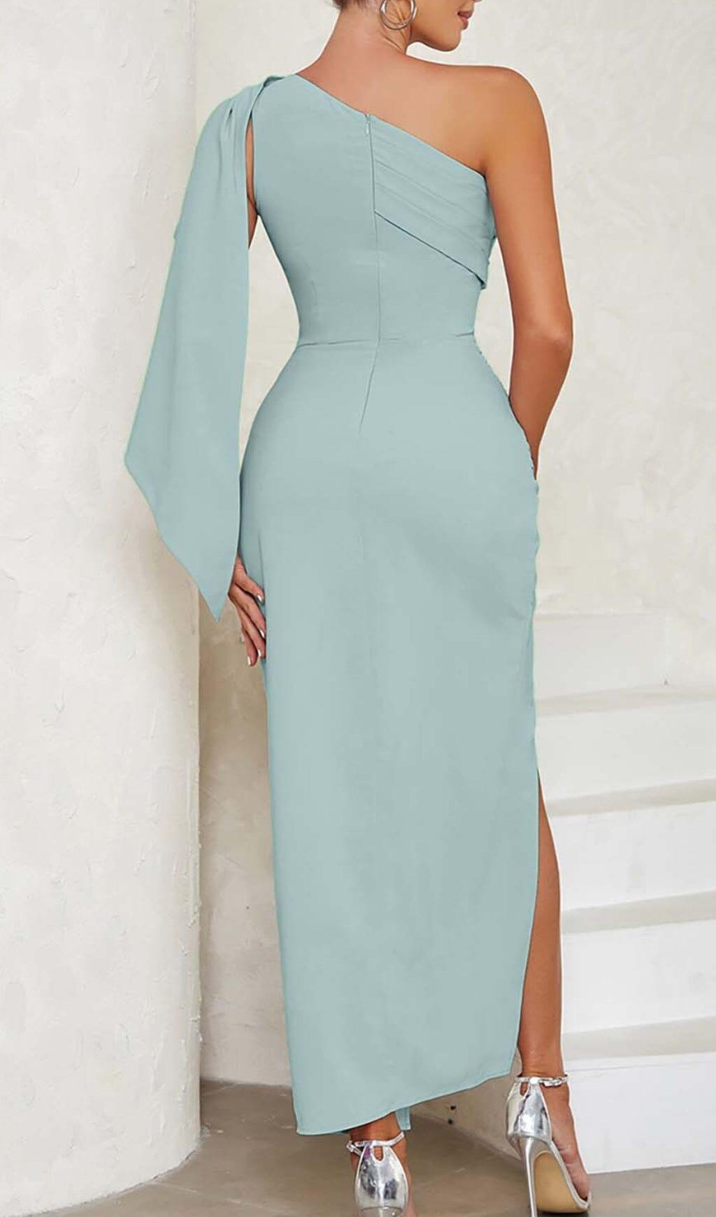 ONE SHOULDER SLIT MAXI DRESS IN PALE BLUE