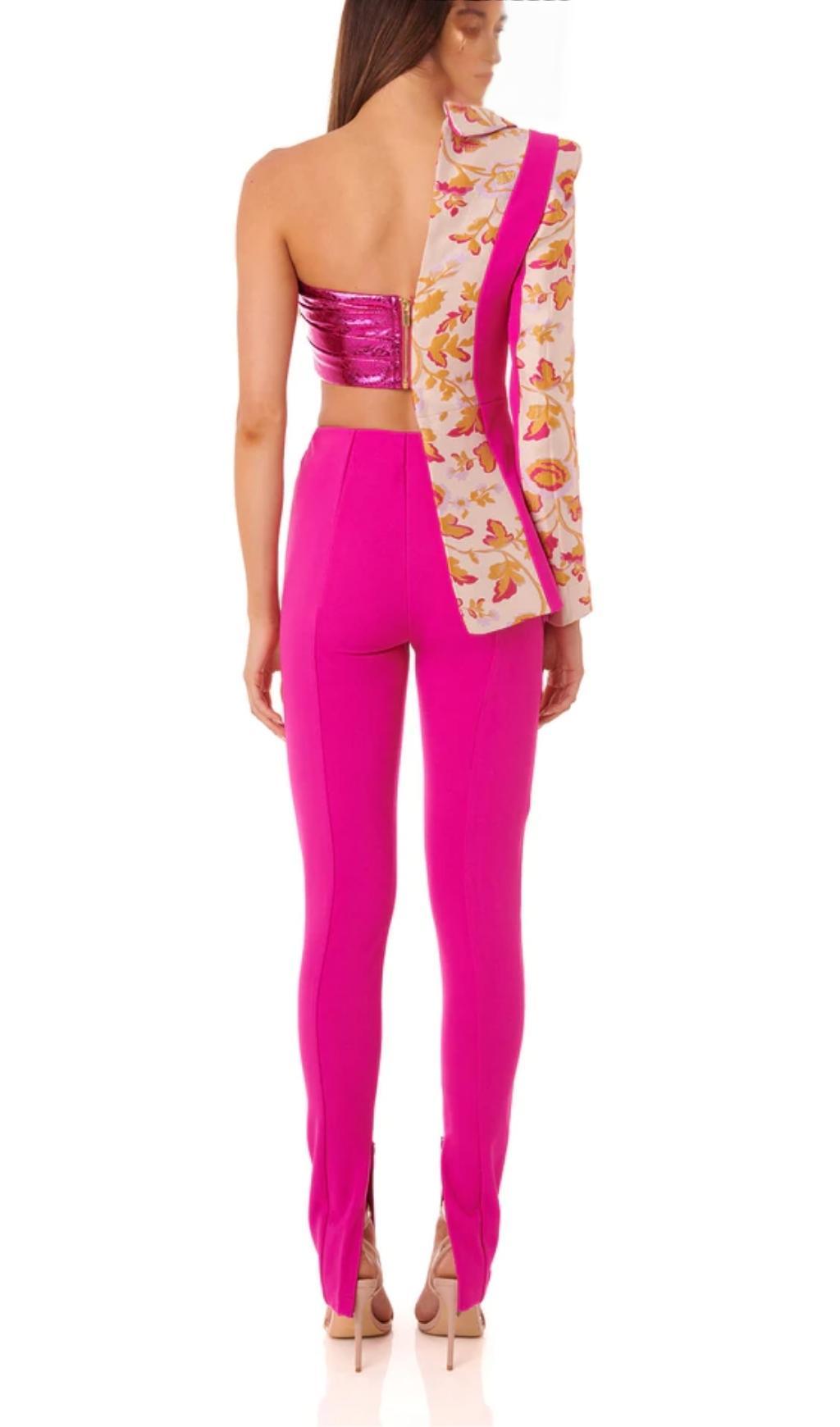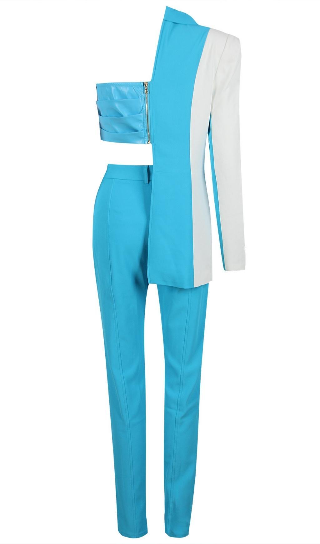 Introducing our sultry and feminine two-piece outfit - the perfect addition to your wardrobe. With its one-shoulder long sleeve design and high-waisted pants, this set is designed to flatter your curves and make you feel confident and stylish. Accessorize with a pair of delicate heels to complete the look.
