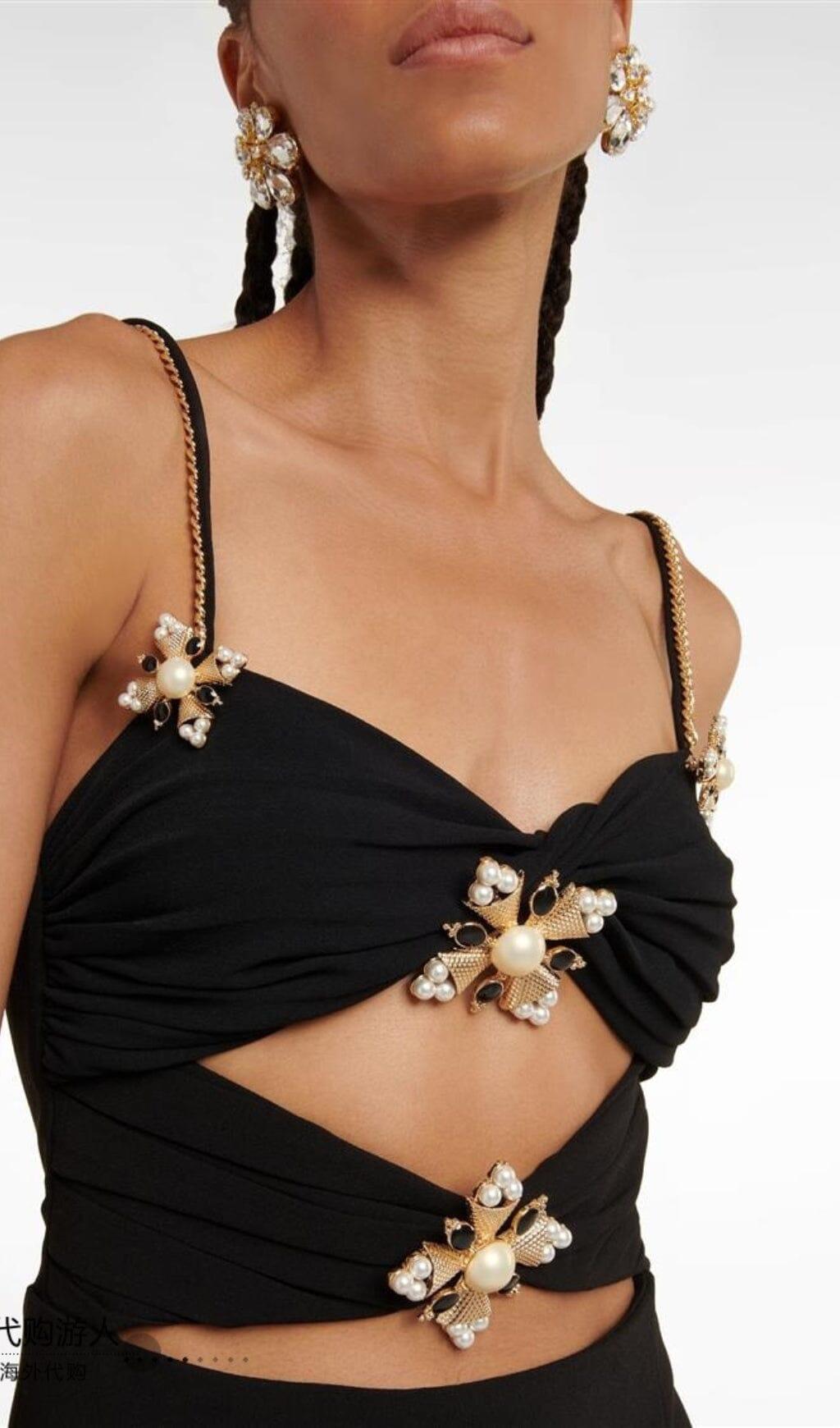 ORBIT COLUMN MIDI DRESS IN BLACK