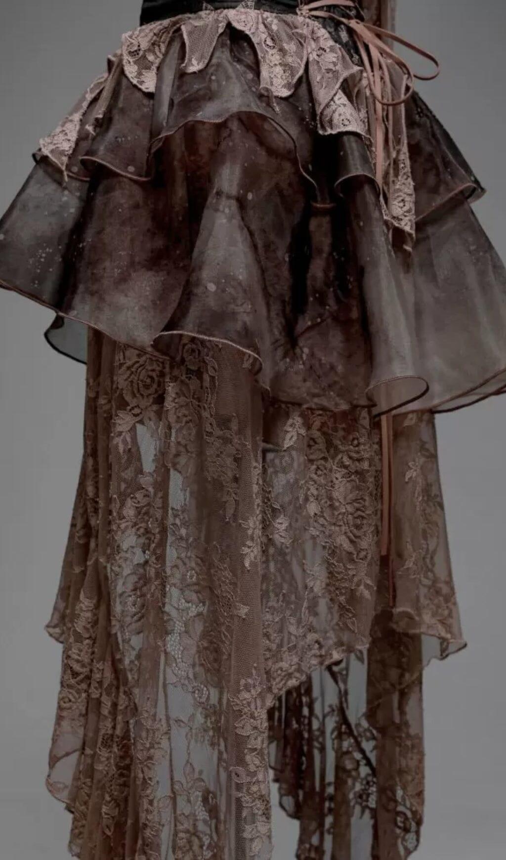 The Organza Lolita Lace Slit Skirt is the perfect combination of elegance and edginess. Made from double-layer tie-dye organza and featuring delicate lace wavy edges, this skirt is a stunning addition to any wardrobe.