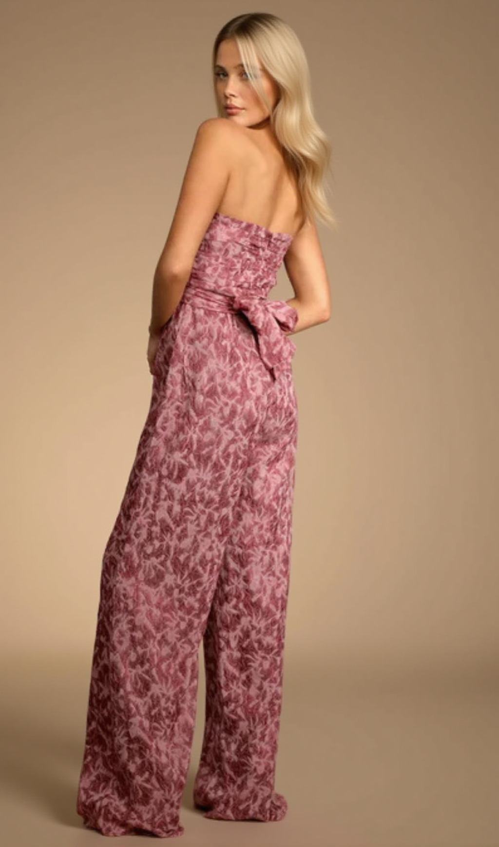 Introducing our Organza Ruched Strapless Wide-Leg Jumpsuit, designed for elegance and comfort. Crafted with intricate details, this jumpsuit features a ruched strapless neckline and wide-leg silhouette. Made from high-quality organza fabric for a luxurious touch. Perfect for any occasion, this jumpsuit exudes confidence and sophistication.