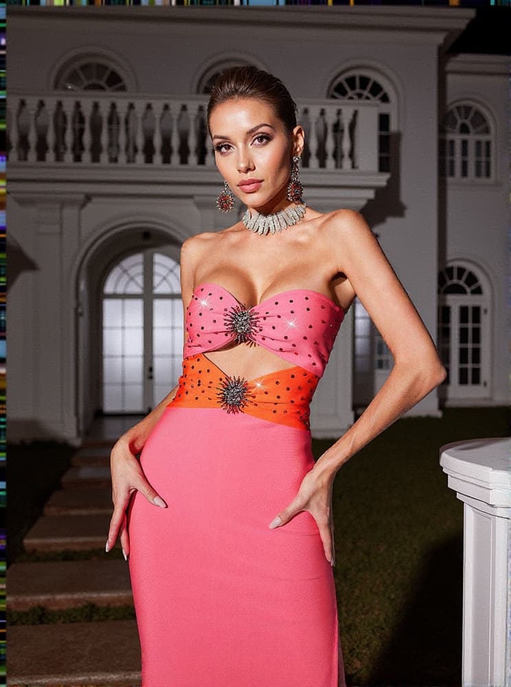 Oriole Crystal Cutout Bandage Dress