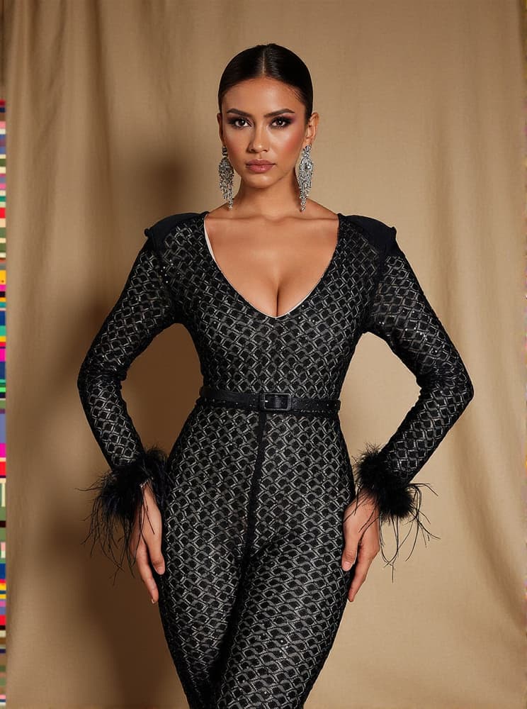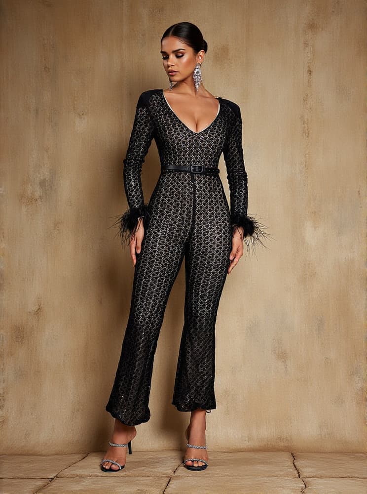 Orwell Long Sleeve Feather Jumpsuit
