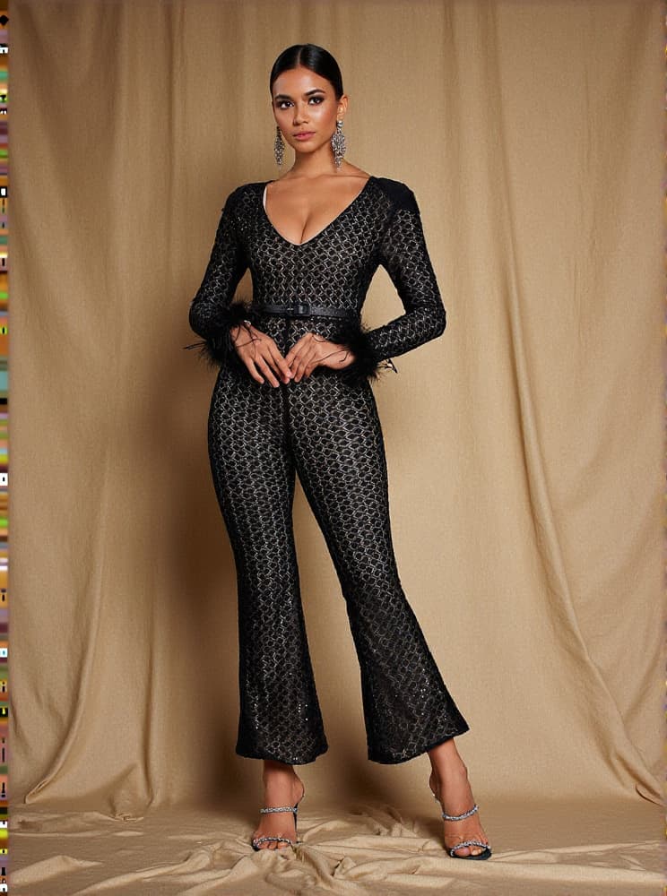 Unleash your inner elegance and grace with the Orwell Long Sleeve Feather Jumpsuit. This stunning one-piece features a long sleeve design and delicate feather detailing, making it the perfect choice for any special occasion. With its luxurious fabric and sophisticated style, you'll be sure to make a lasting impression.