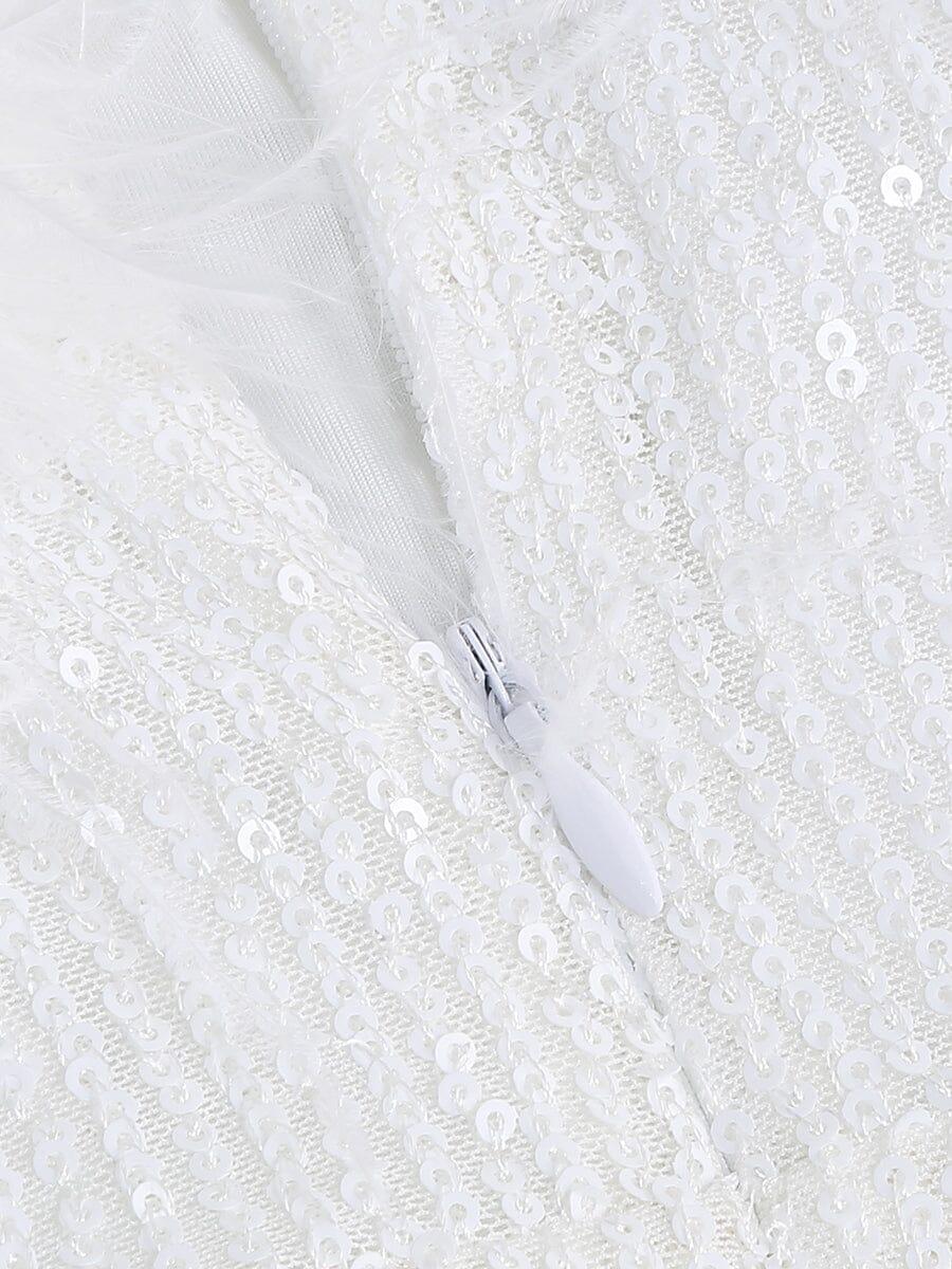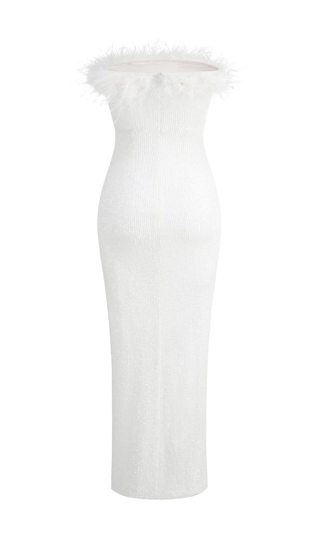OSTRICH HAIR DECORATIVE BANDEAU MAXIC DRESS IN WHITE
