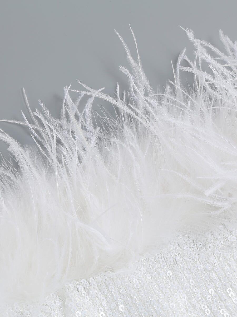 Ostrich Hair Decorative Bandeau Maxi Dress in White