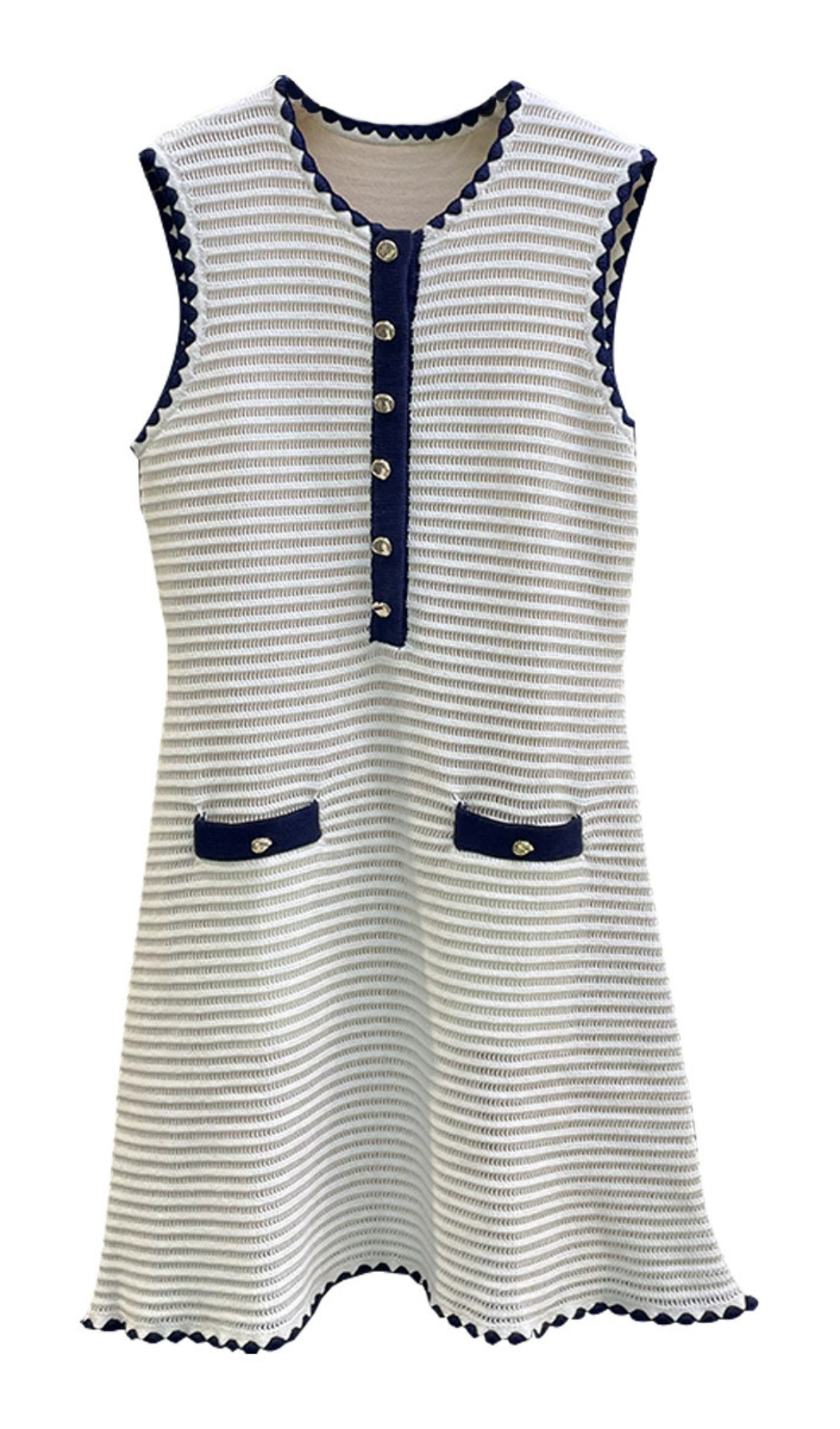 PANDORA 8-BUTTON WHITE SLEEVELESS CROCHET MINI DRESS