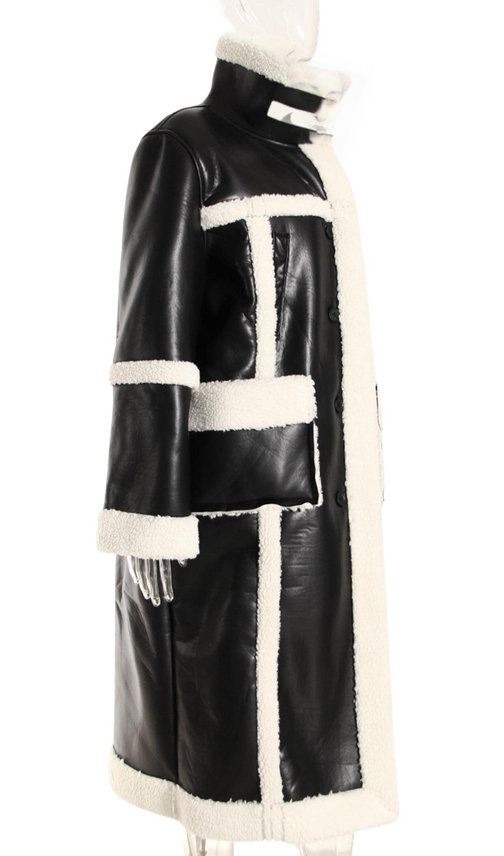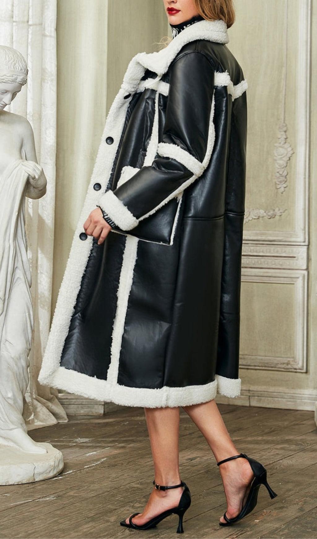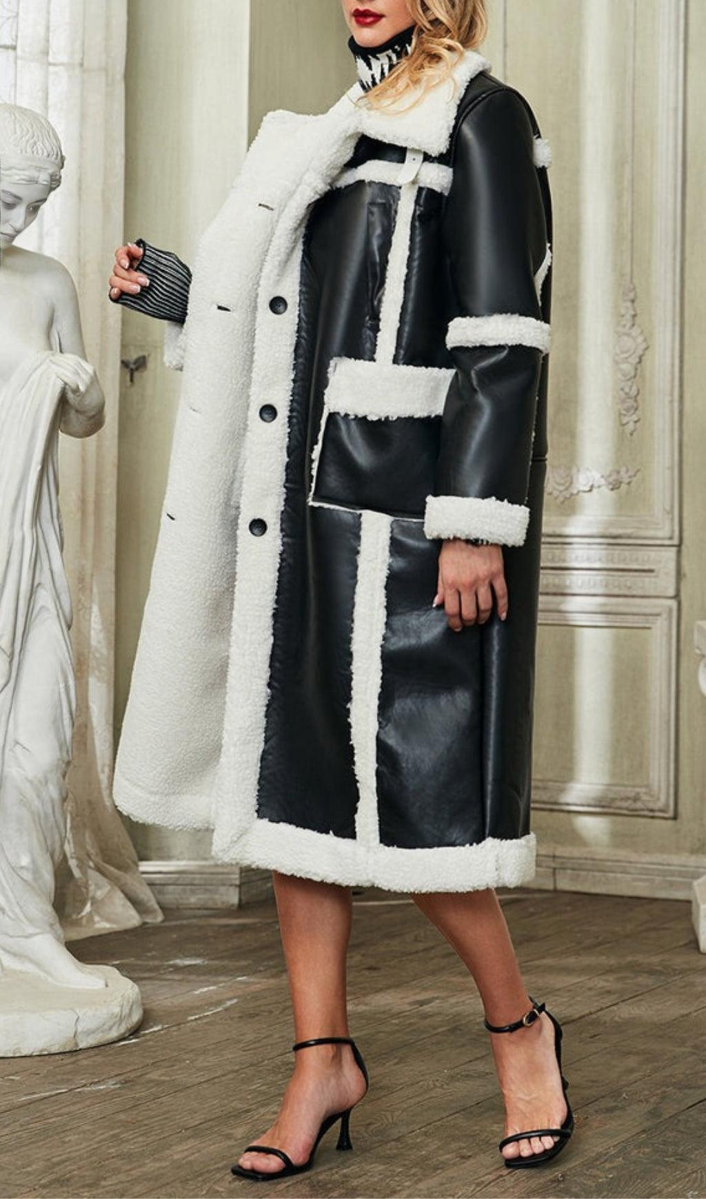 PATCHWORK FAUX FUR LEATHER COAT