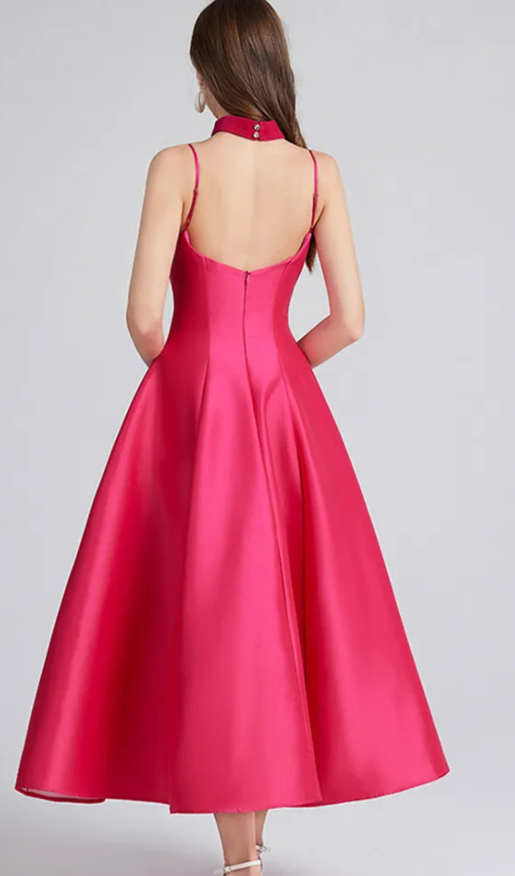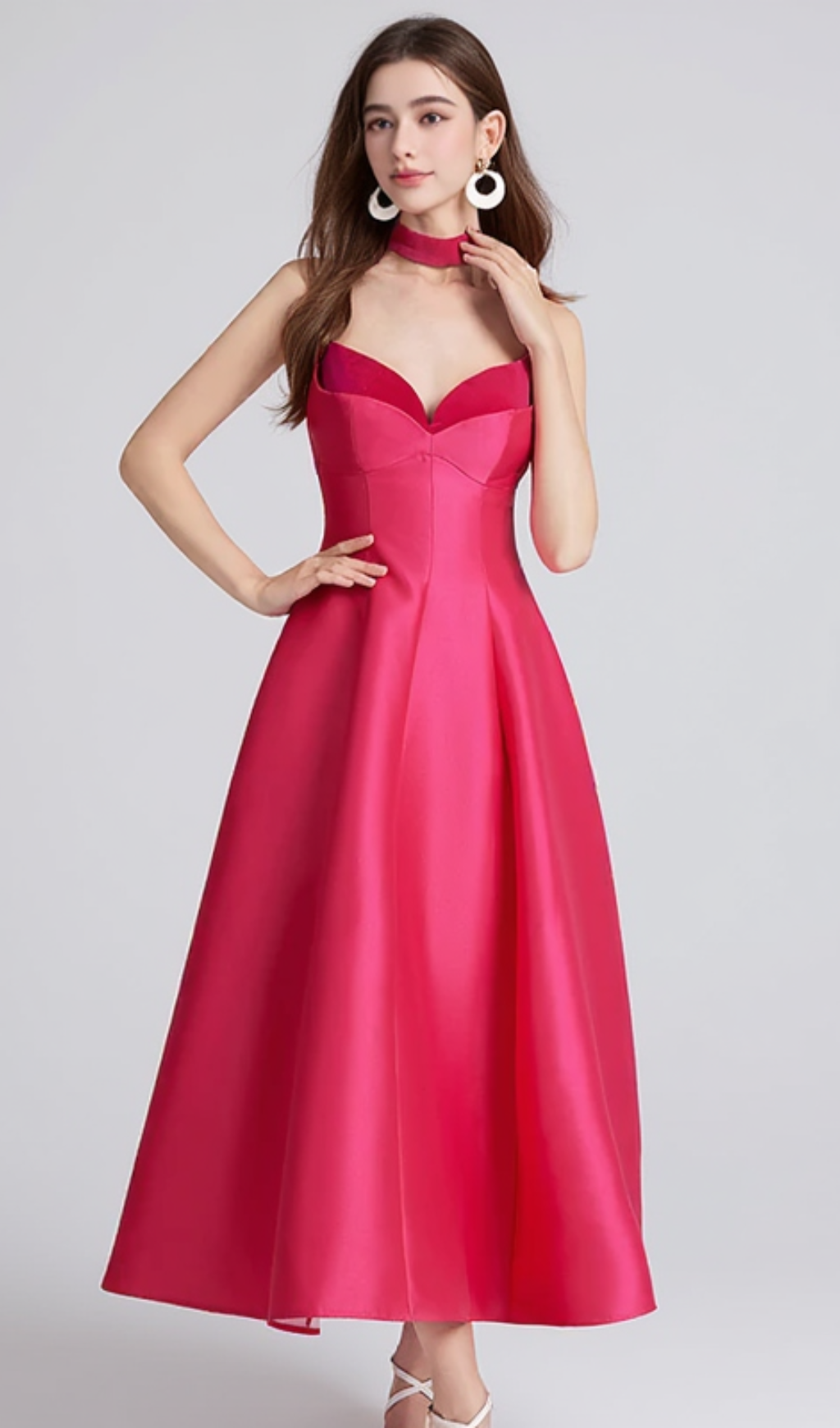 patchwork midi dress in rose red