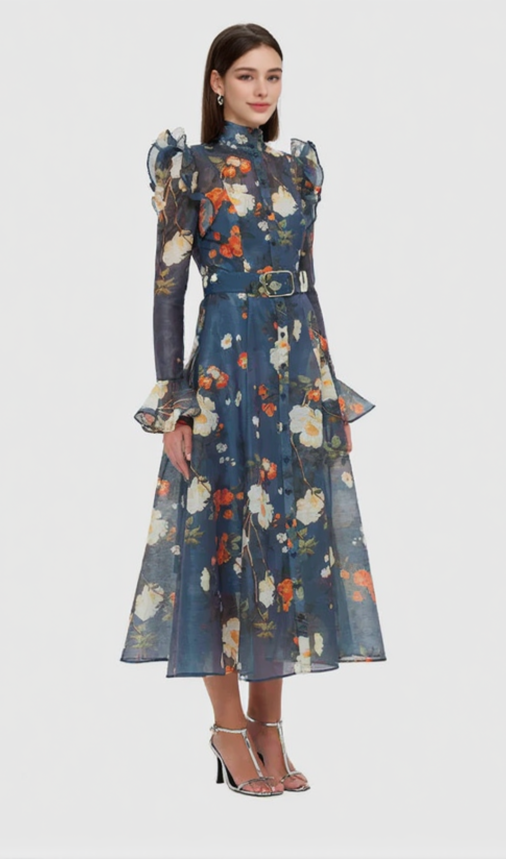 This elegant Pear Blossom Print Butterfly Sleeve Midi Dress features a delicate floral print and flattering butterfly sleeves. Made from high-quality materials, it offers both style and comfort for any occasion. Perfect for adding a touch of sophistication to your wardrobe.