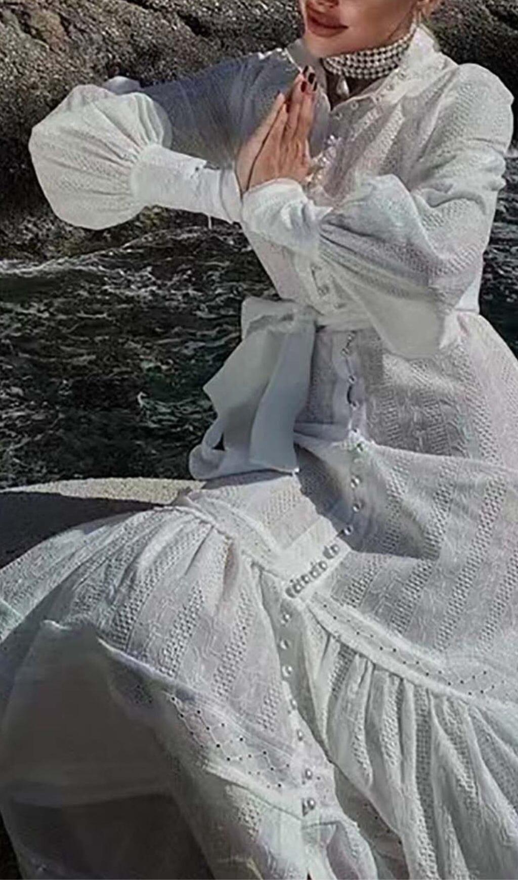 PEARL EMBROIDERED MIDI DRESS IN WHITE