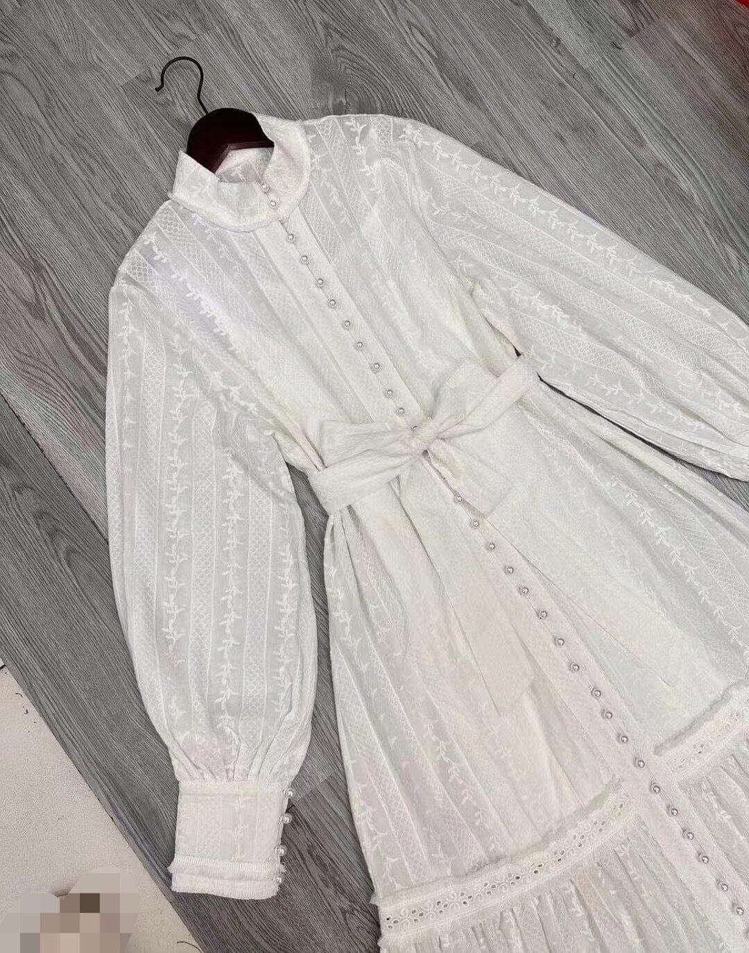 So why settle for ordinary when you can have extraordinary? Choose the Pearl Embroidered Midi Dress in White and make a lasting impression wherever you go. Gentle dry clean only to keep this beautiful dress looking its best.