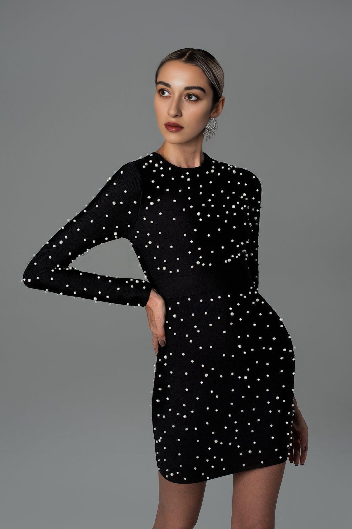 Elevate your style with the Pearl Long Sleeve Mini Bandage Dress. Order now and experience the perfect combination of timeless elegance and contemporary fashion!