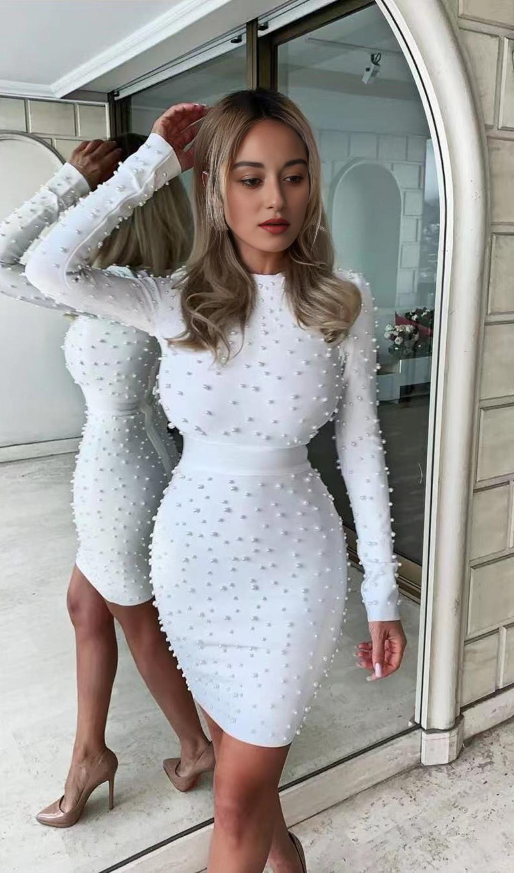 Pearl Long Sleeve Mini Bandage Dress