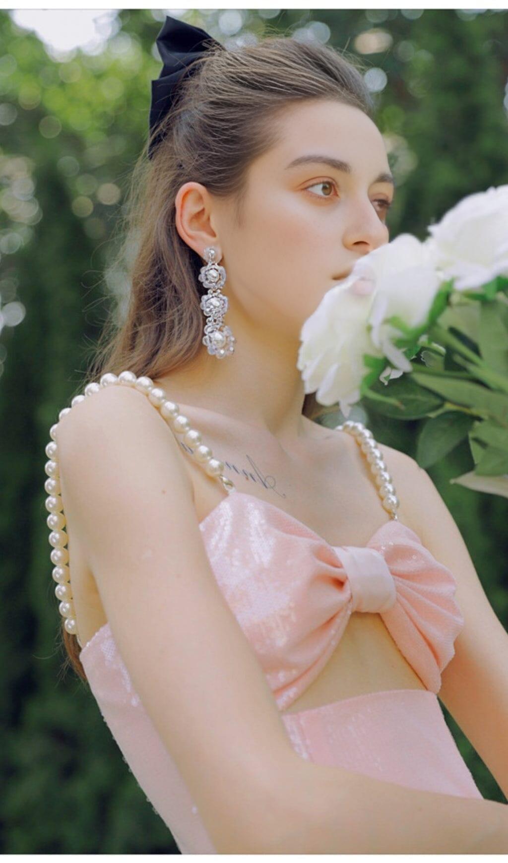 What sets our dress apart is its exquisite pearl embellishments and strappy details. The pearls add a touch of luxury and glamour, while the strappy design adds a trendy and modern twist. You'll definitely make a statement wherever you go in this dress.