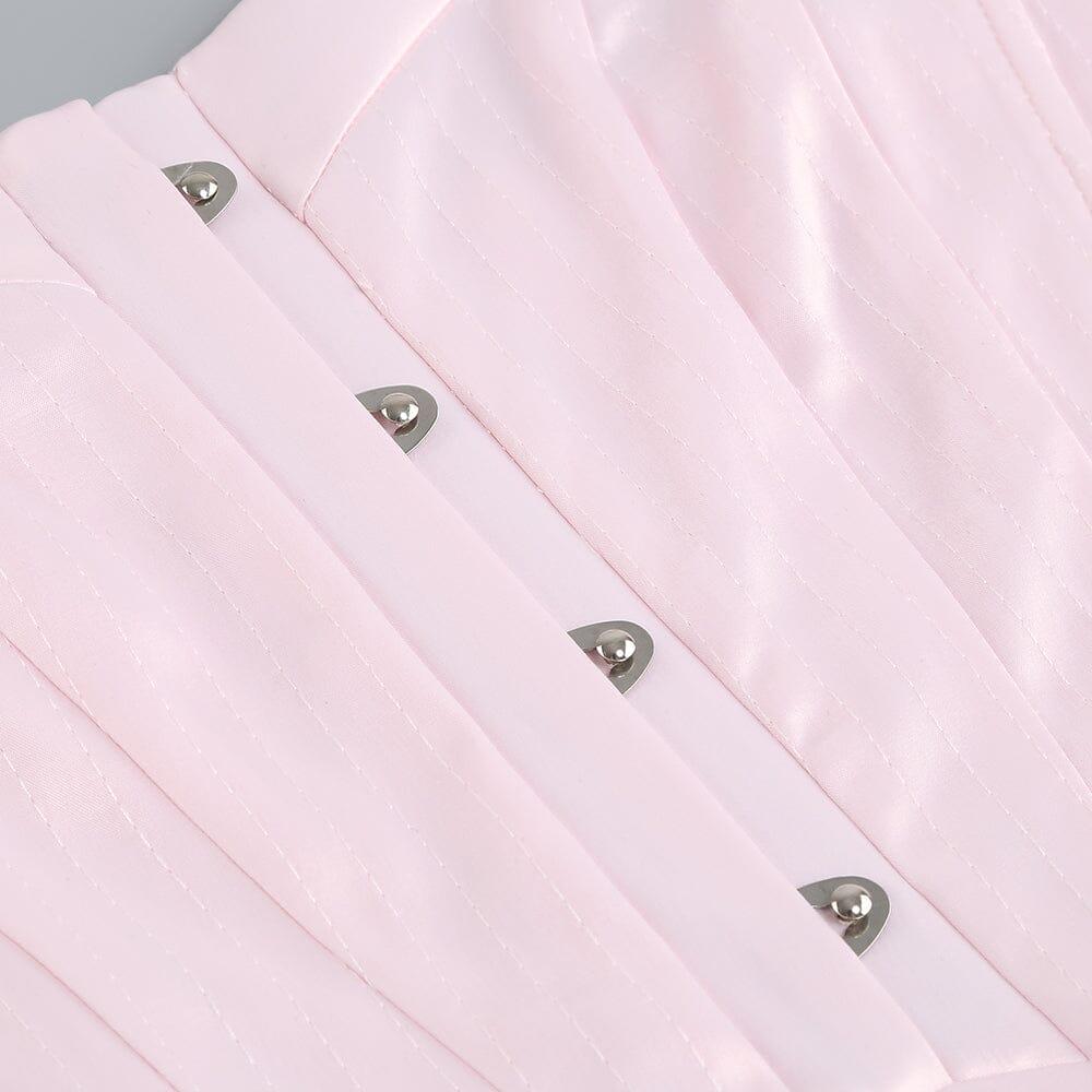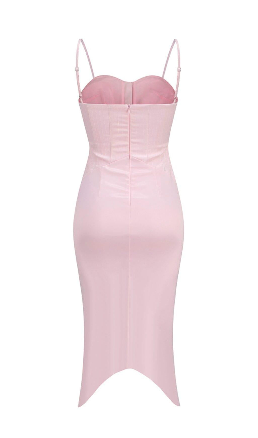 PERIWINKLE SATIN CORSET MIDI DRESS IN PINK