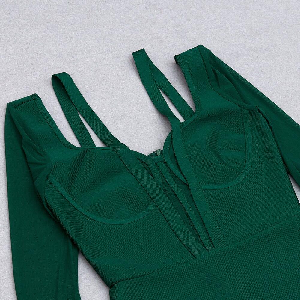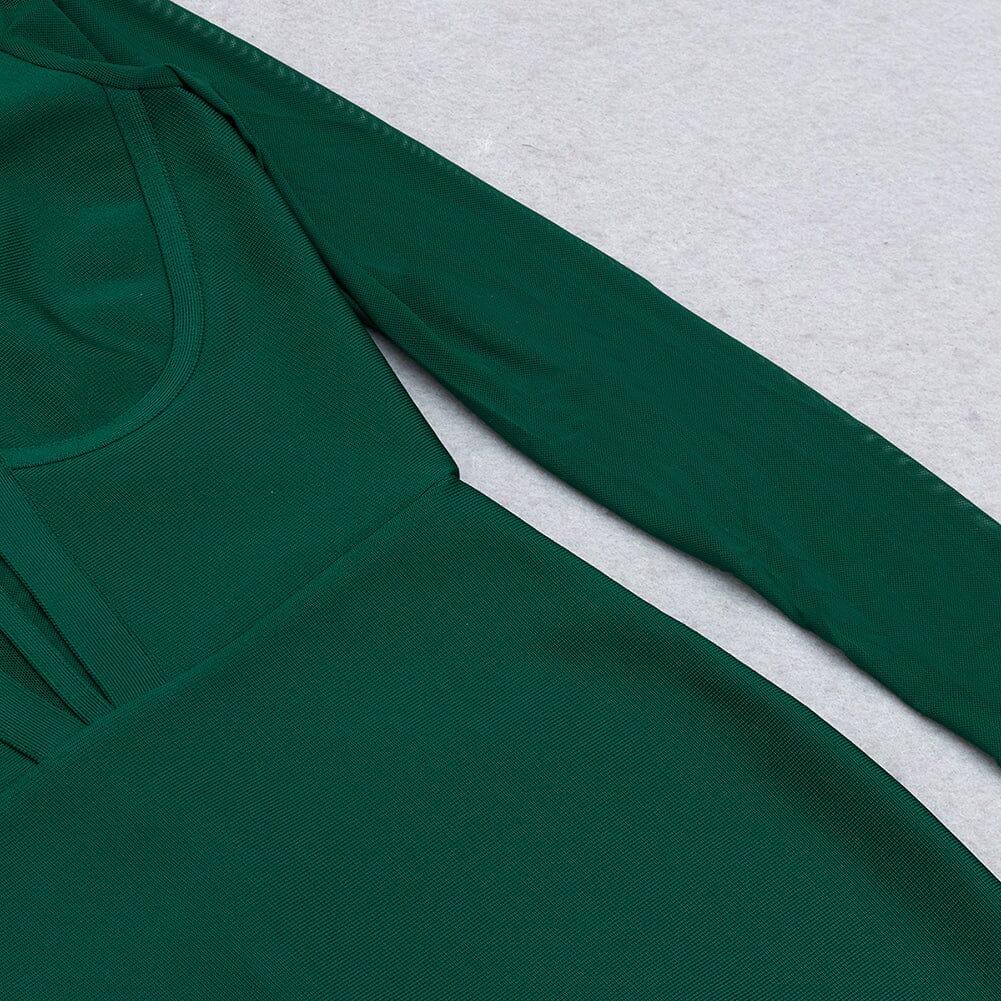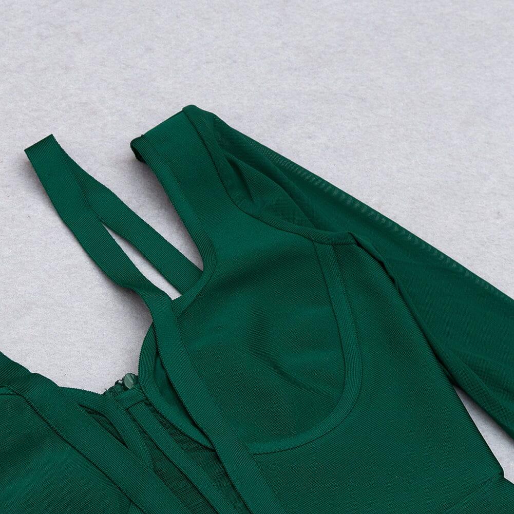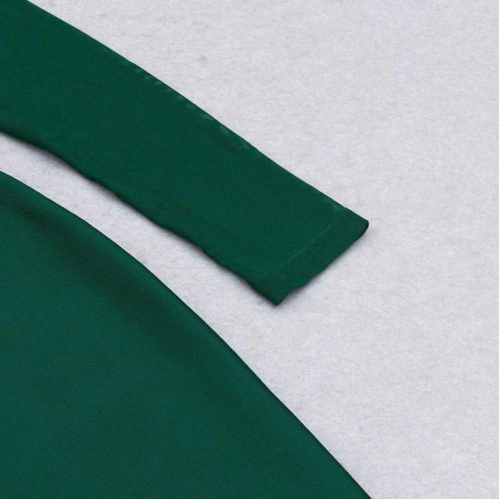 The retro dark green tones create a captivating and radiant look, while the unique gauze and fabric stitching add an element of allure, revealing just the right amount of skin to showcase your charm.