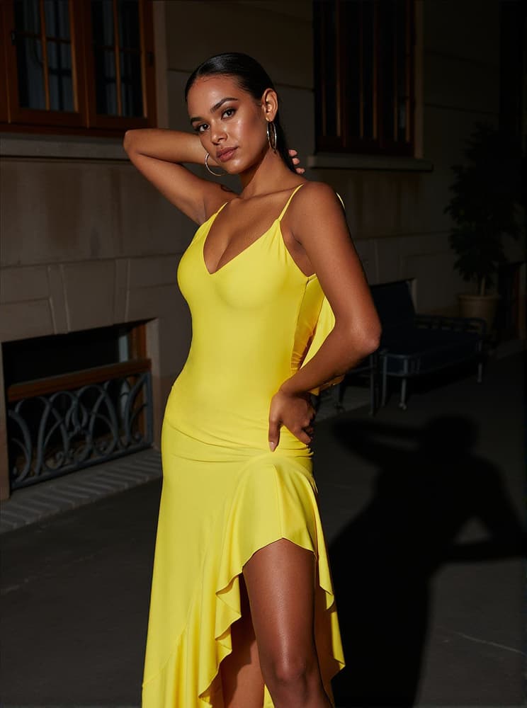 A maxi dress crafted with spaghetti straps and backless silhouette makes for a perfect summer-vibe ensemble. This Petal Backless Maxi Dress In Yellow is the perfect choice for a sunny day look with a hint of chic.