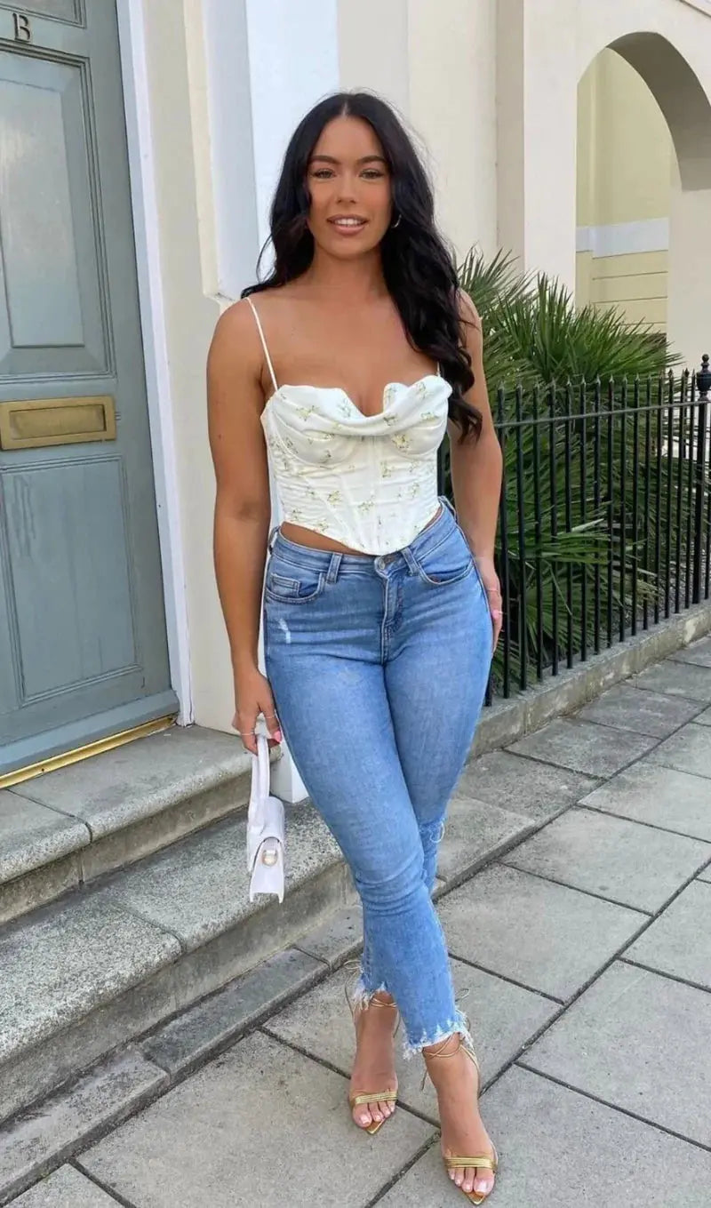 PILE OF BROKEN FLOWERS PILE NECK CAMISOLE
