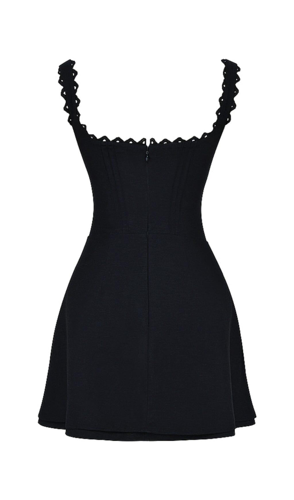 This Pin Tuck Mini Dress in Black is the perfect combination of crisp, feminine, and summery style. It's designed for those summer dates and features pintucked cups and a corset bodice that cinches the waist, creating a flattering silhouette. The flirty hemline highlights your bronzed legs, while the fully lined construction ensures comfort. With a zip closure at the back, it's easy to slip on and off. Pair it with our high heels in white for a sunny day look.