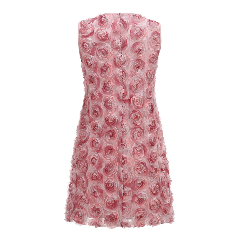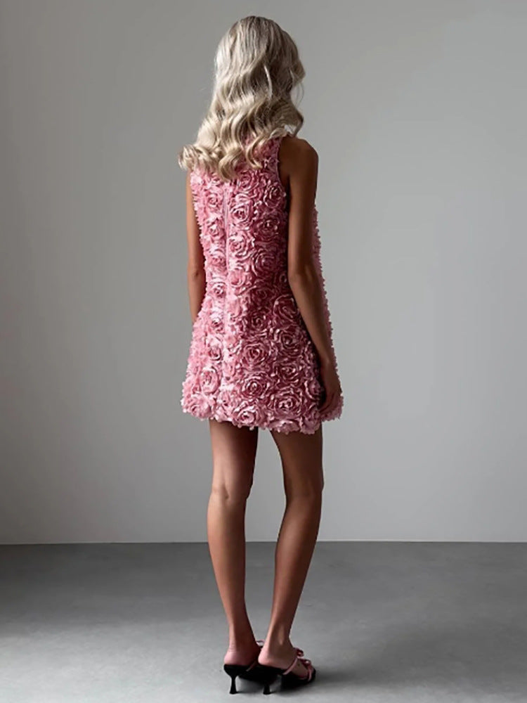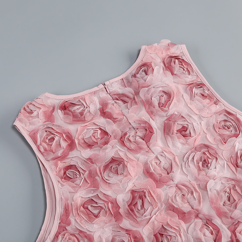 Pink 3D Floral Sleeveless Mini Dress