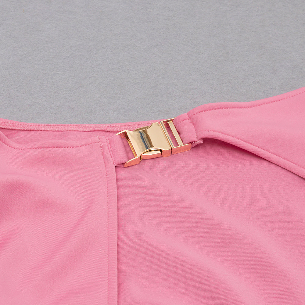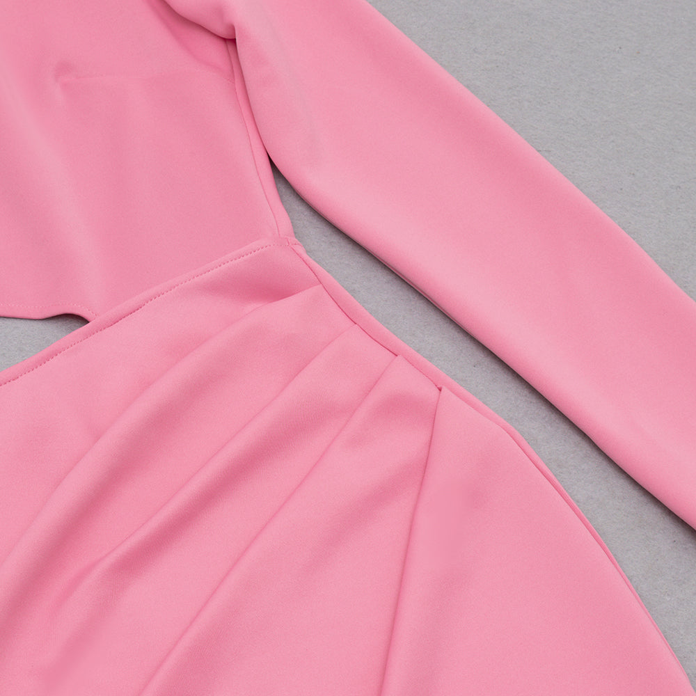 PINK ASYMMETRICAL NECK CUT OUT SPLIT THIGH DRESS