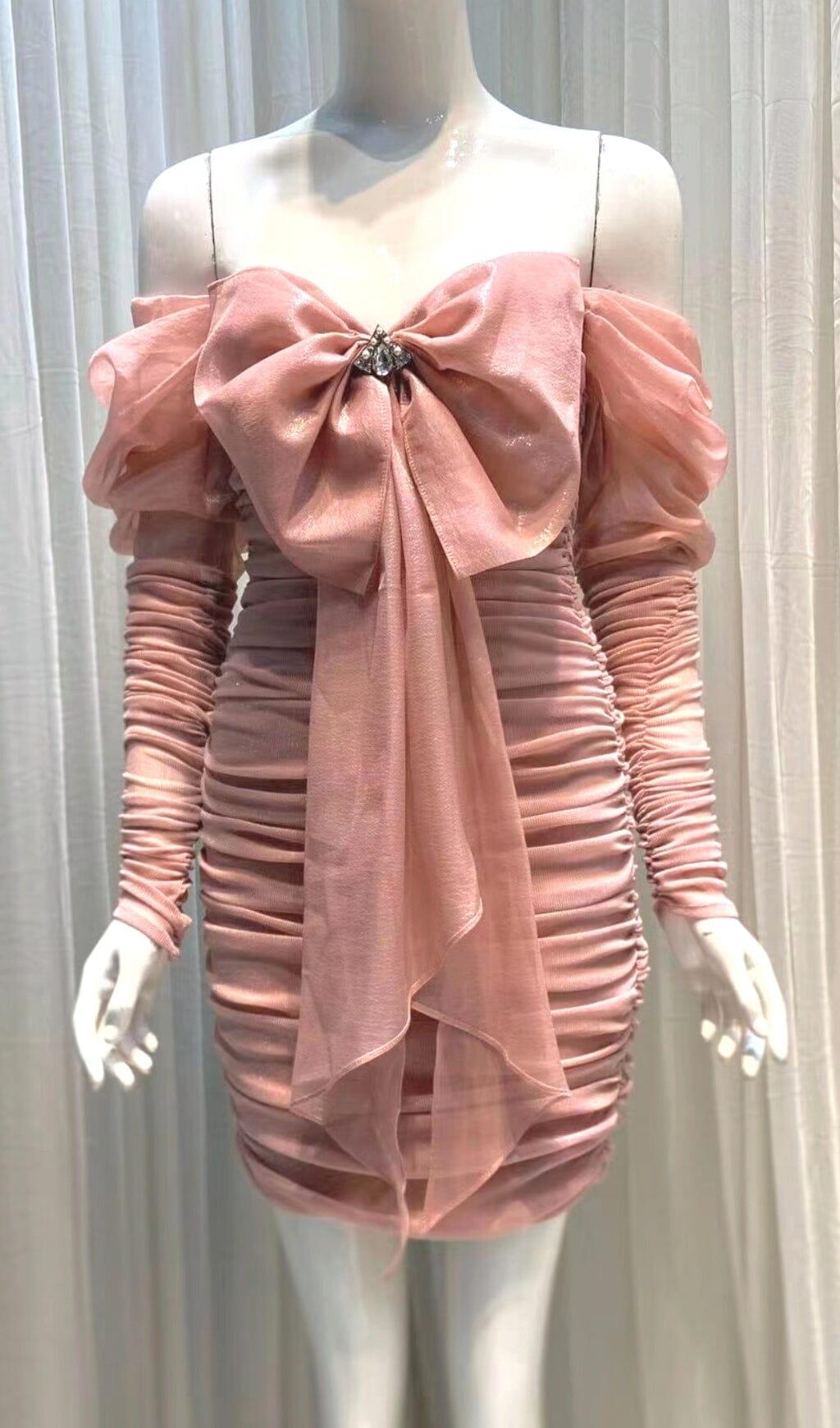 PINK BOWKNOT LONG SLEEVE MINI DRESS