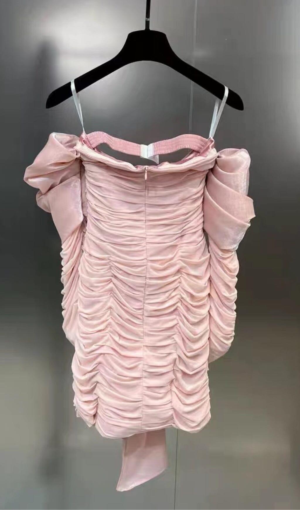 Be the center of attention with our Pink Bowknot Long Sleeve Mini Dress. This beautiful bandeau dress is designed to make you look and feel confident wherever you go. The dress features pleats in all the right places and is elegantly wrapped in a bow, adding a touch of femininity to your look.