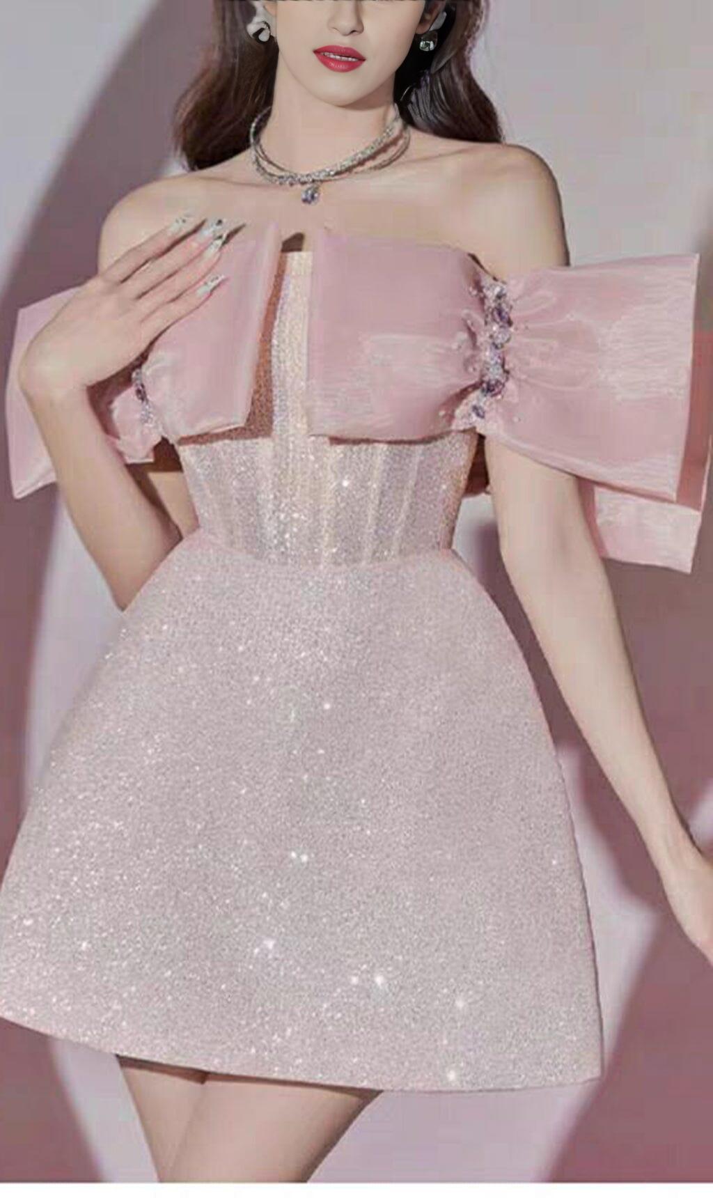 PINK BOWKNOT STRAPLESS MINI DRESS