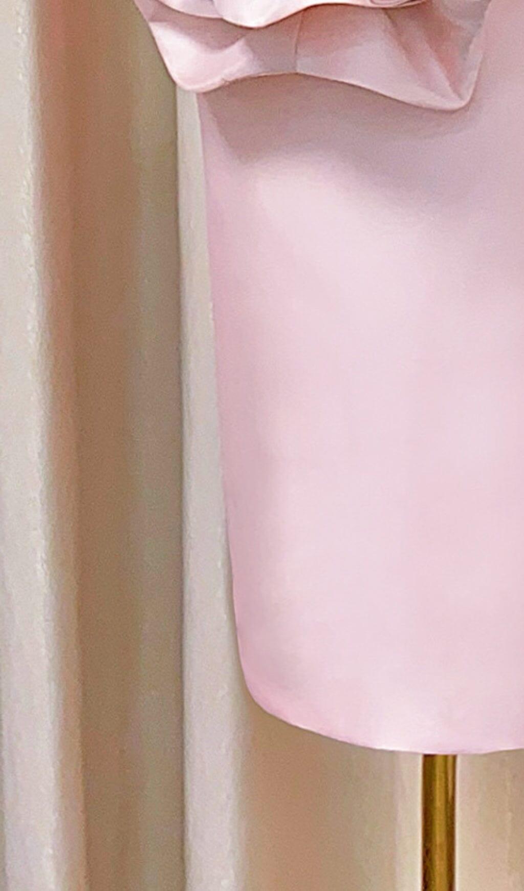 PINK FLORAL STRAPLESS TUBE TOP MIDI DRESS