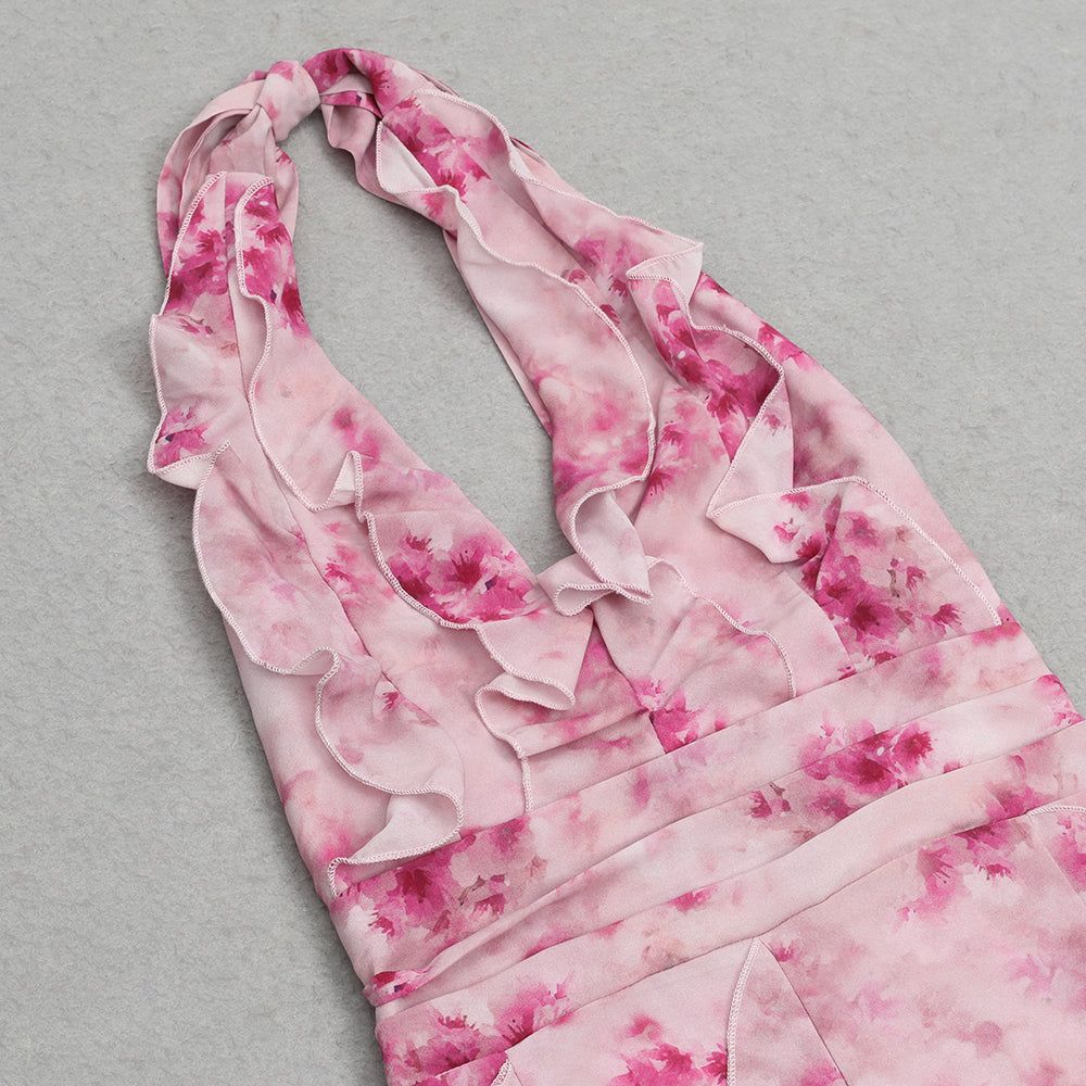 ABHA PINK HALTERNECK PRINTED SLIT MAXI DRESS