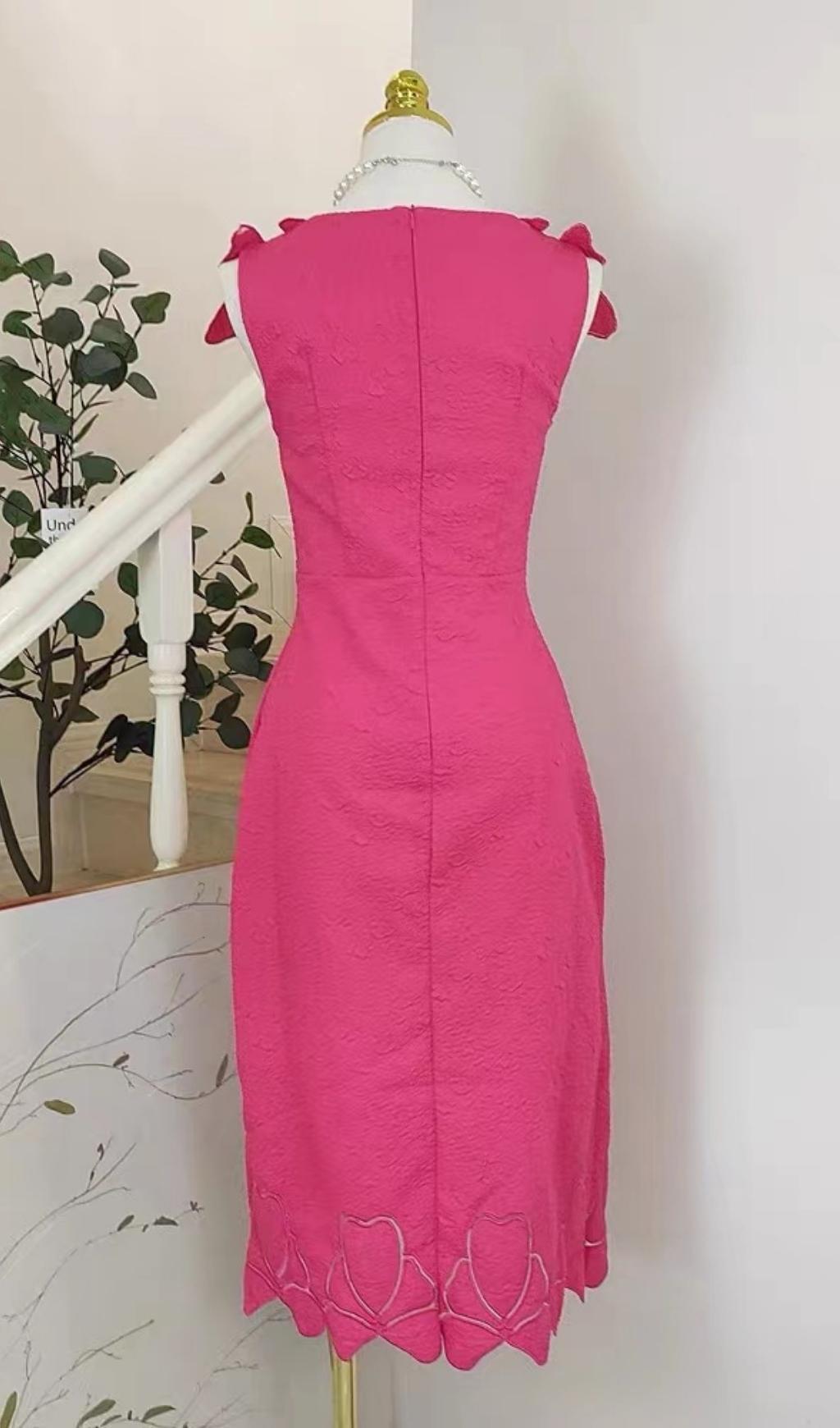 PINK JACQUARD EMBROIDERY MIDI DRESS