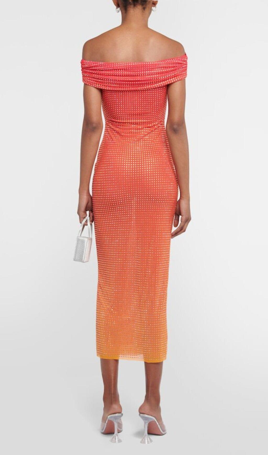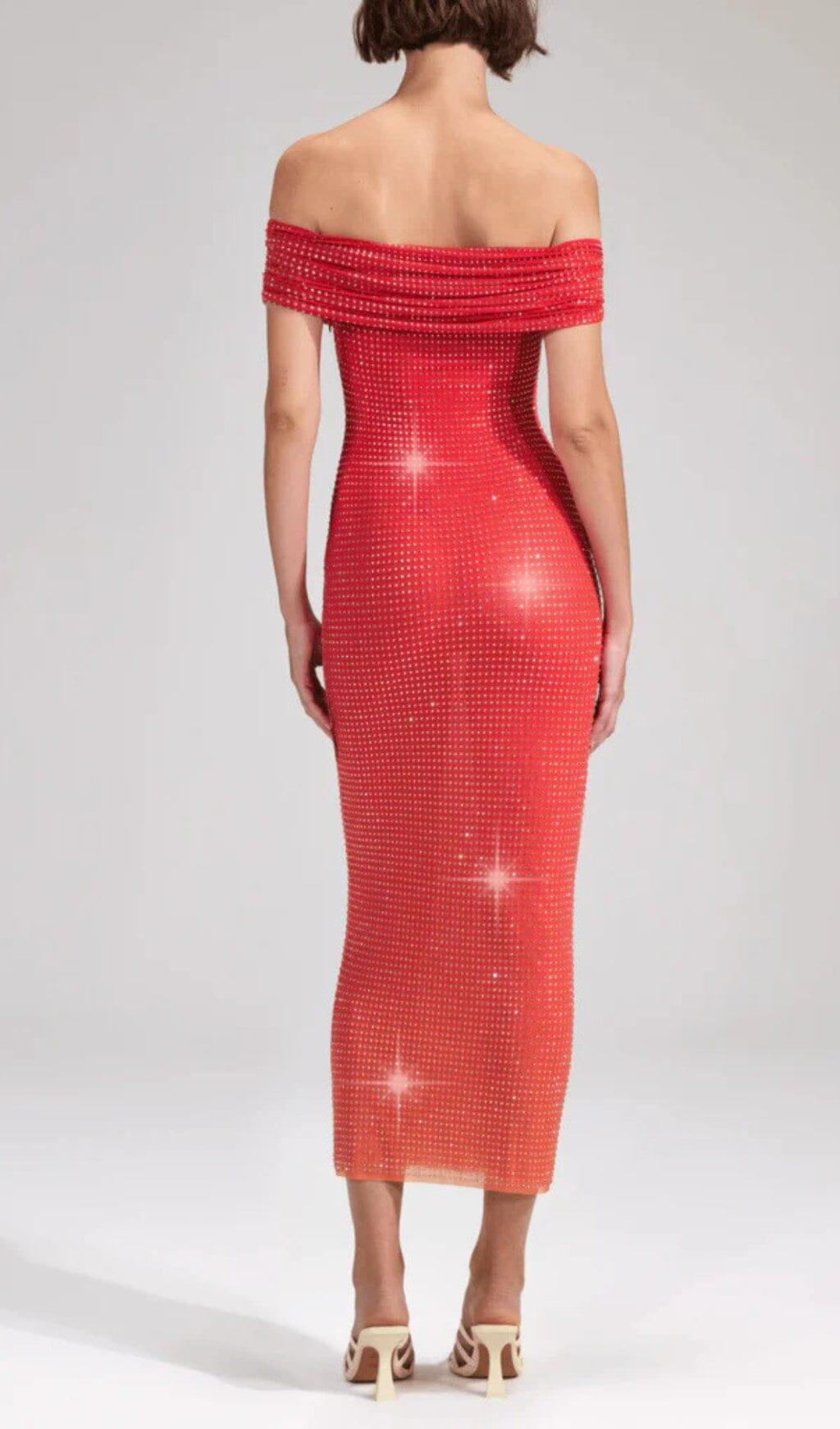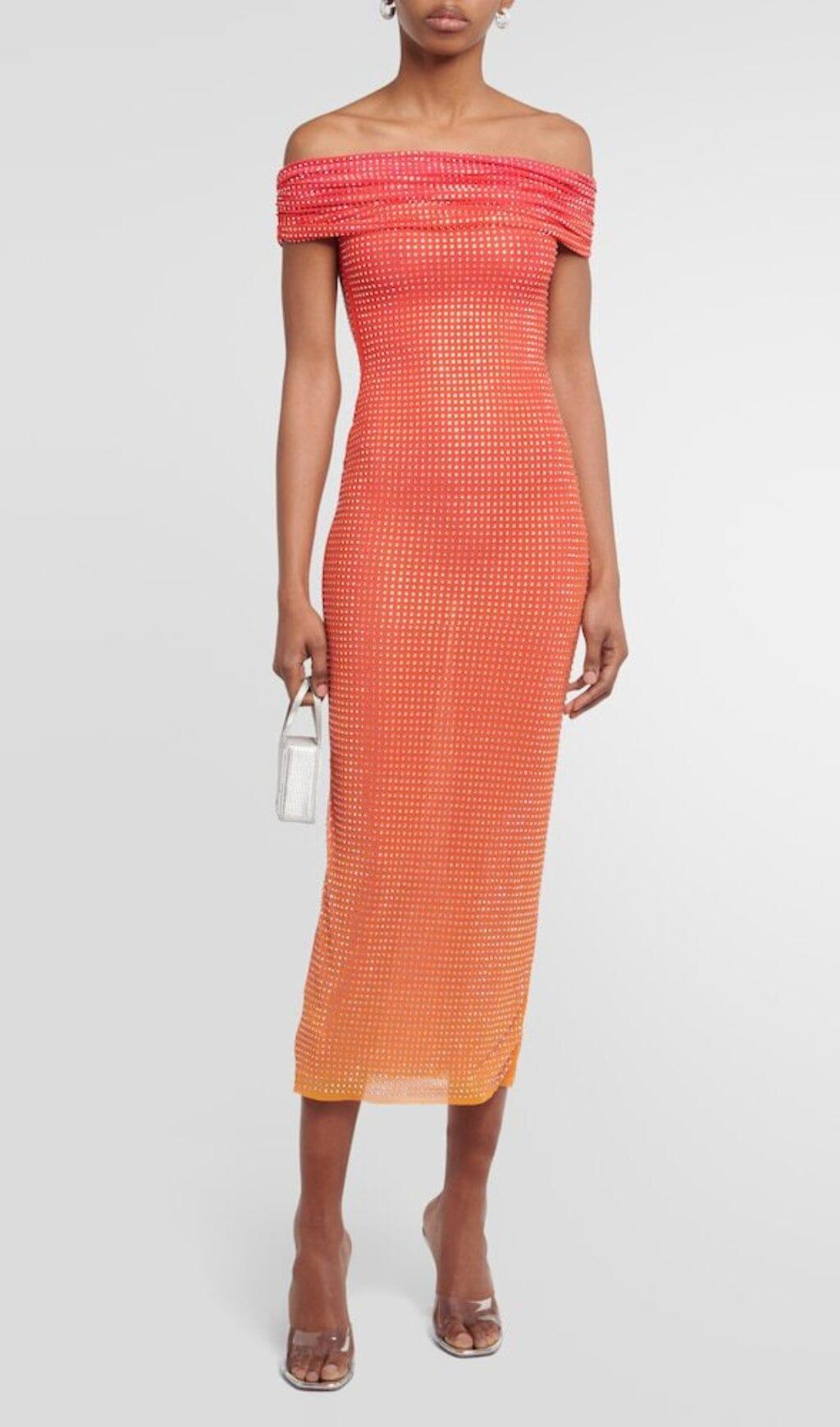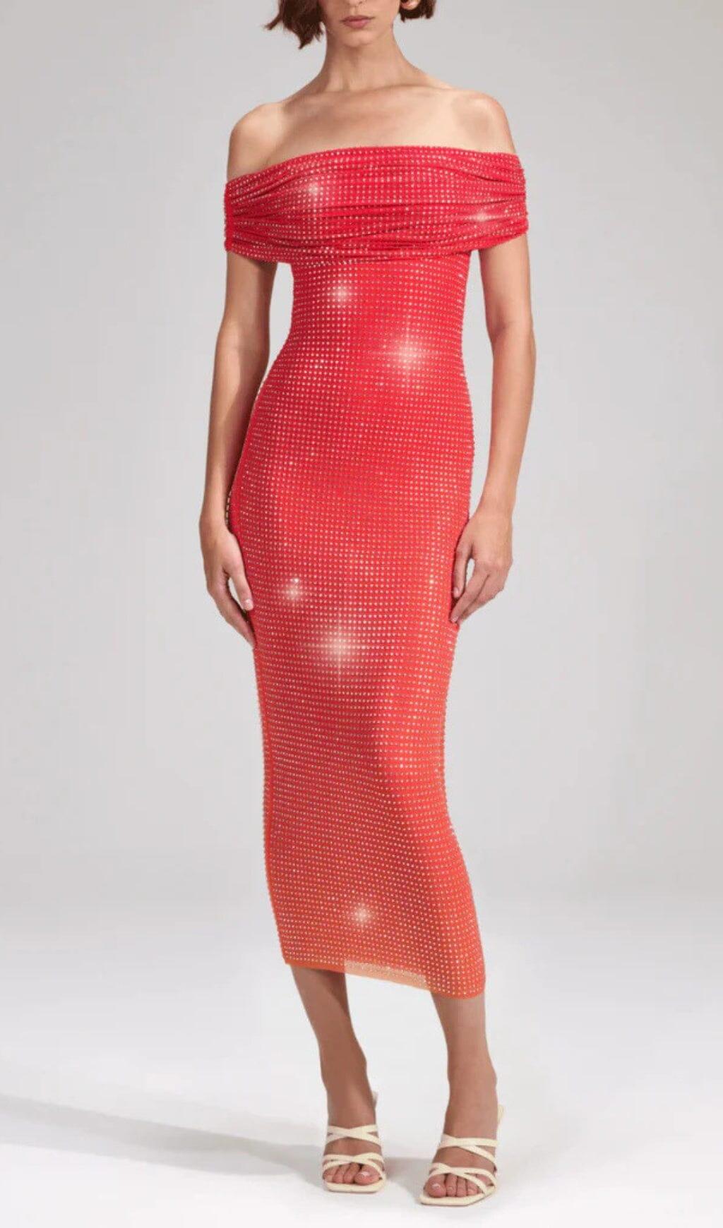 PINK OFF THE SHOULDER EMBELLISHED MIDI DRESS