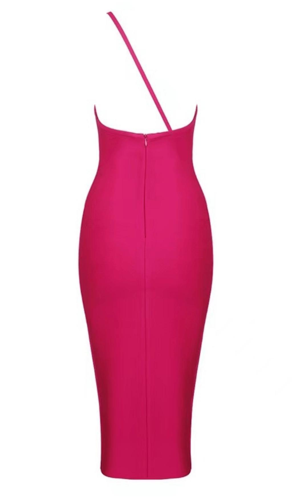 • Get ready to turn heads in this stunning Pink One Shoulder Bandage Dress.