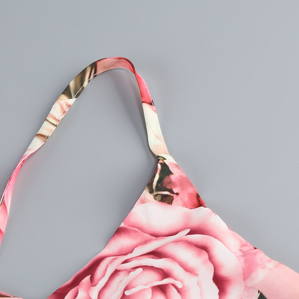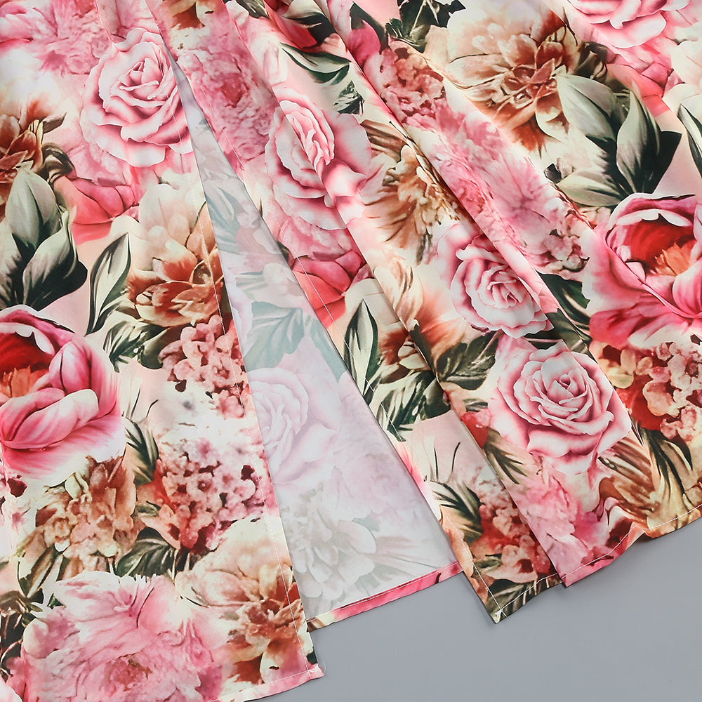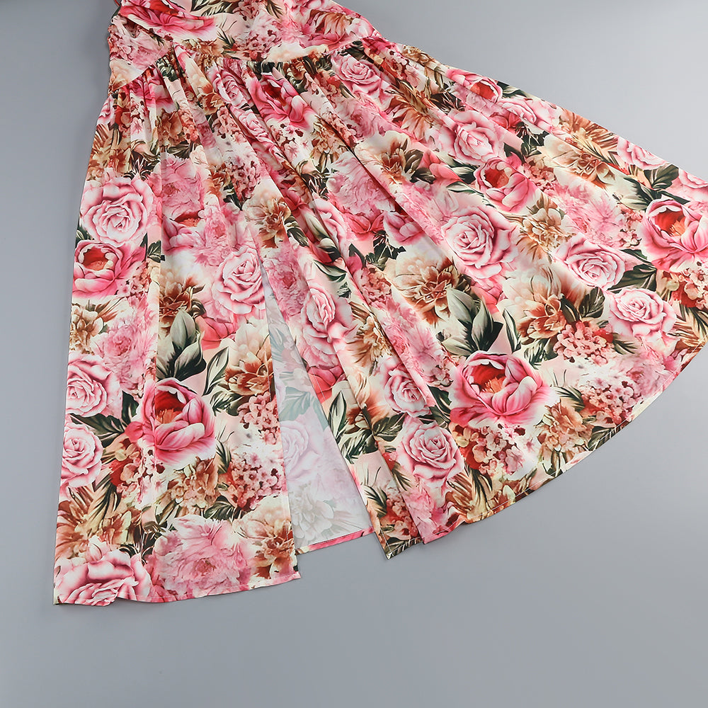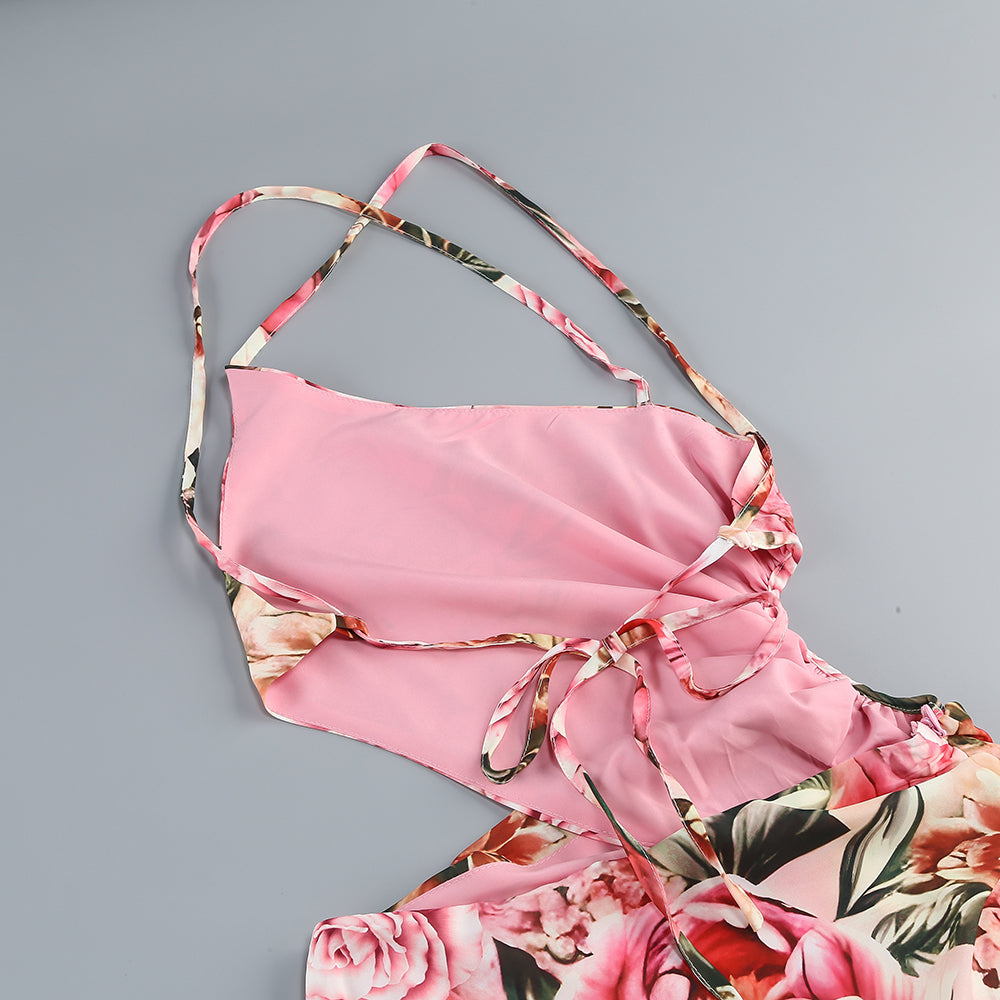 Pink printed hollow-out open-back slit Midi Dress