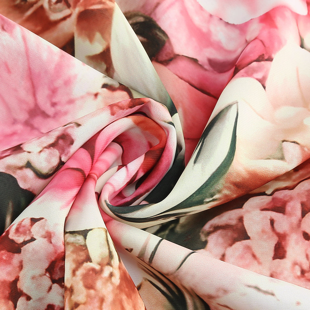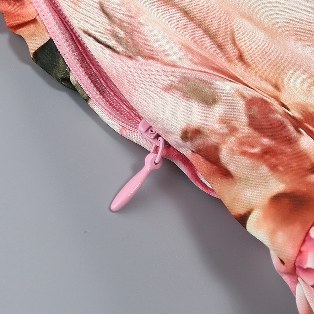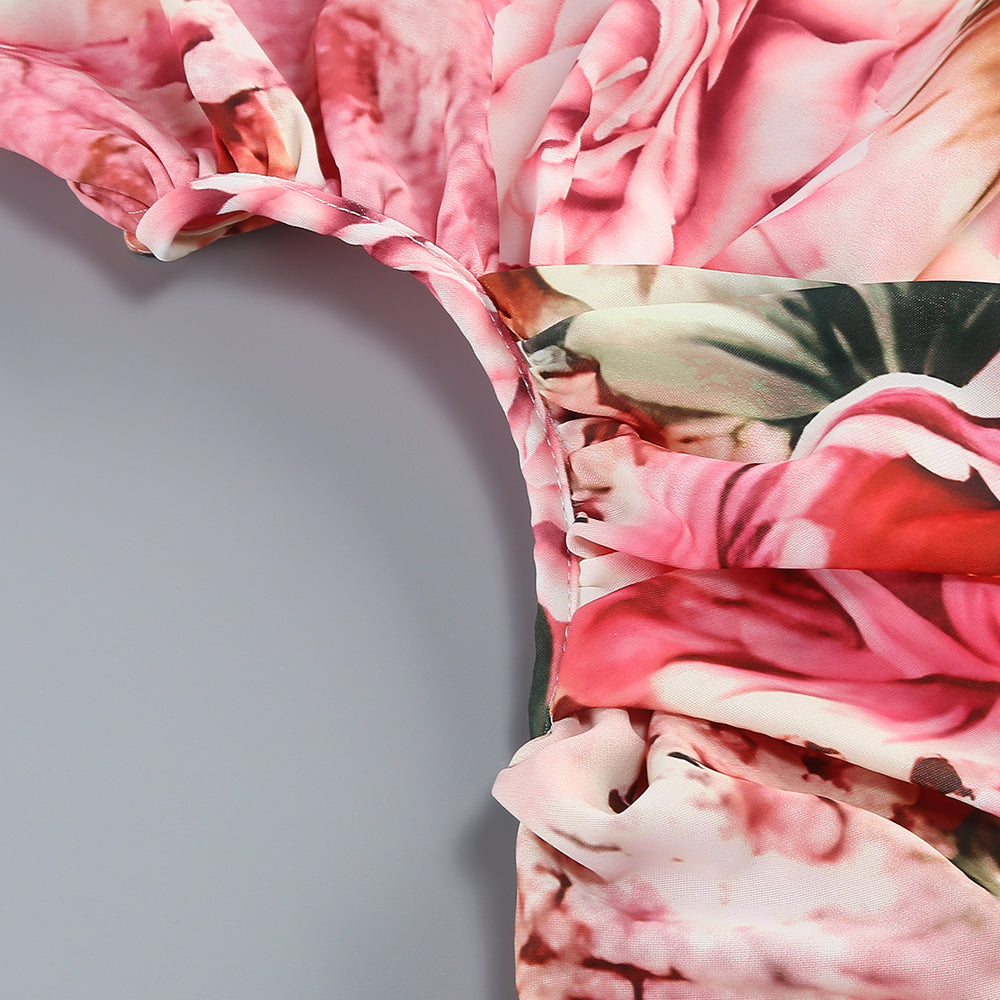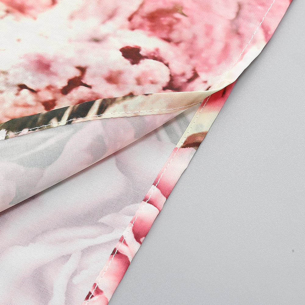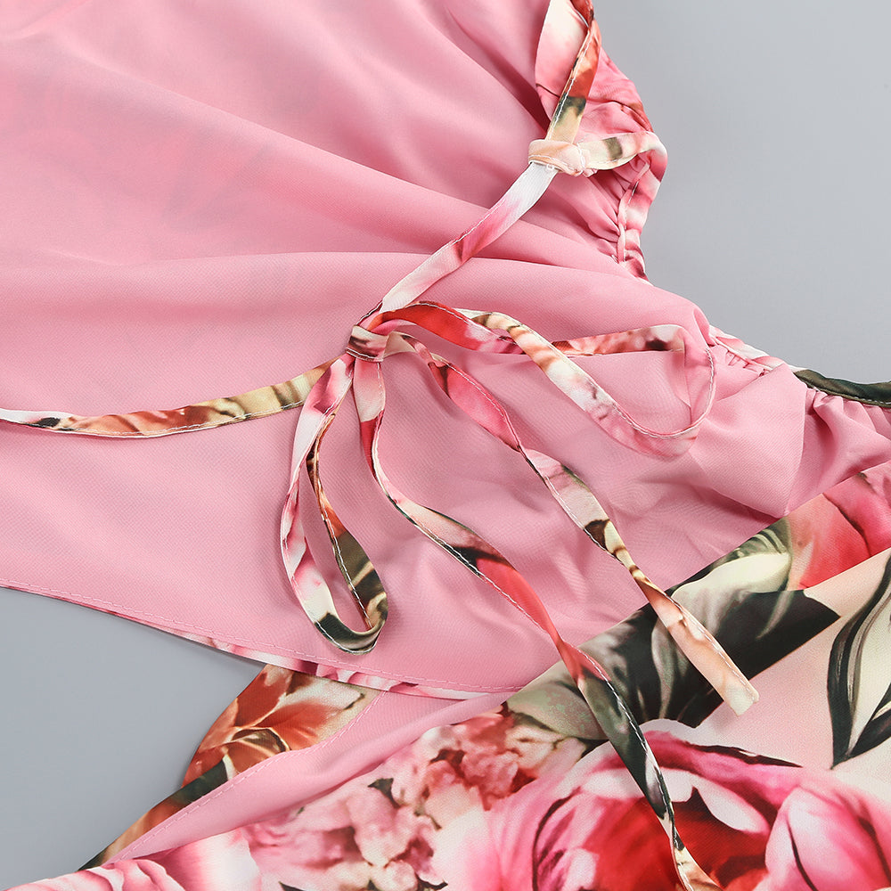 Pink printed hollow-out open-back slit Midi Dress