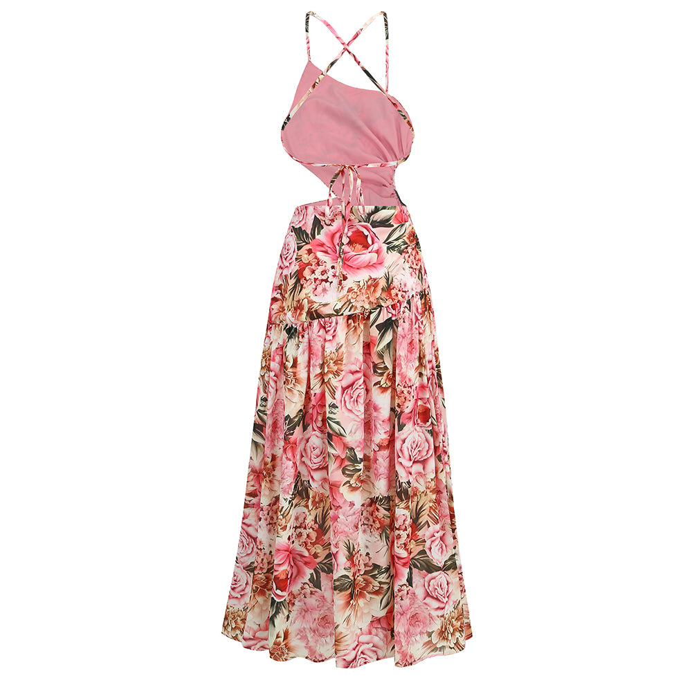 This strappy, waist - baring, printed maxi dress features vibrant colors and dynamic patterns. The crisscross thin straps and waist - baring design add a touch of fashion. It's perfect for summer music festivals, allowing you to fully unleash your enthusiasm; ideal for beach vacations, harmonizing with the sand and waves; great for outdoor pool parties, showcasing your energetic charm; suitable for tropical - themed gatherings, highlighting your unique style; and excellent for leisure time at open - air bars, demonstrating your individuality.